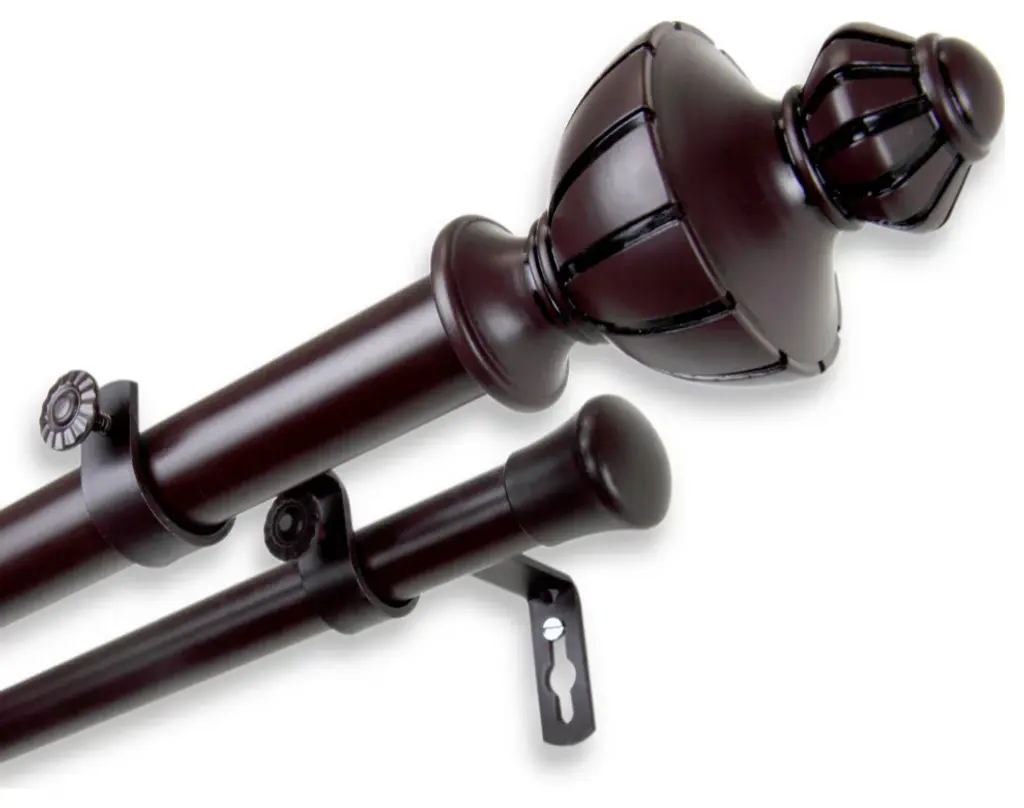 Twine 1" Double Curtain Rod 120-170", Mahogany