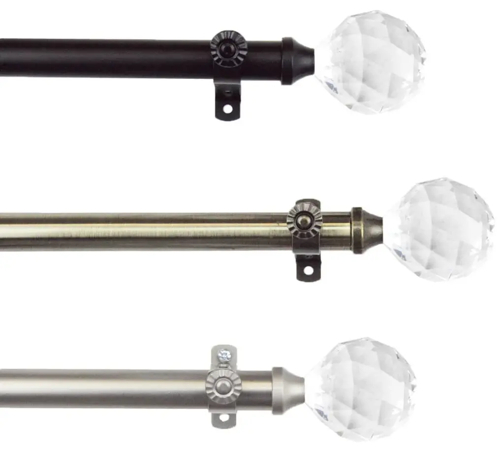 Introduce an elegant touch to your window treatment with this beautiful 13/16" diameter curtain rod set, made of high quality steel rods. Includes telescoping steel pole, mounting hardware, brackets, and 2 finials Projection: 2.875" Finial measurement: 3" W x 2.25" H x 2.25" D