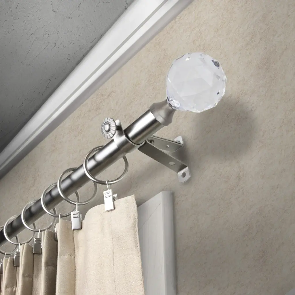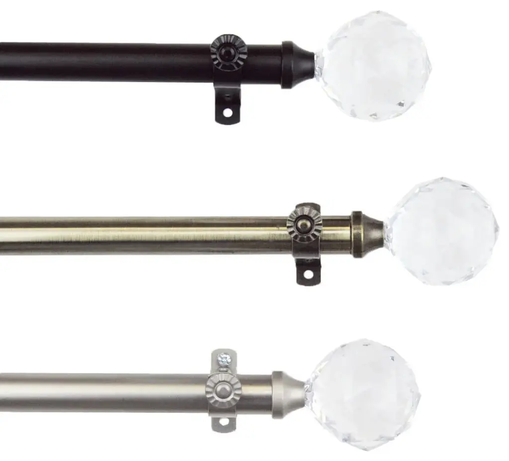 Introduce an elegant touch to your window treatment with this beautiful 13/16" diameter curtain rod set, made of high quality steel rods. Includes telescoping steel pole, mounting hardware, brackets, and 2 finials Projection: 2.875" Finial measurement: 3" W x 2.25" H x 2.25" D