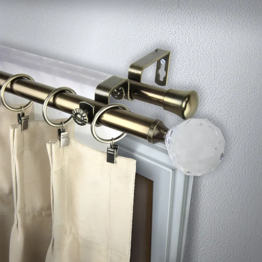 Introduce an elegant touch to your window treatment with this beautiful 13/16" diameter double curtain rod set, made of high quality steel rods. Includes 2 telescoping steel pole, mounting hardware, brackets, and 2 finials Projection: 2.875" Finial measurement: 3" W x 2.25" H x 2.25" D