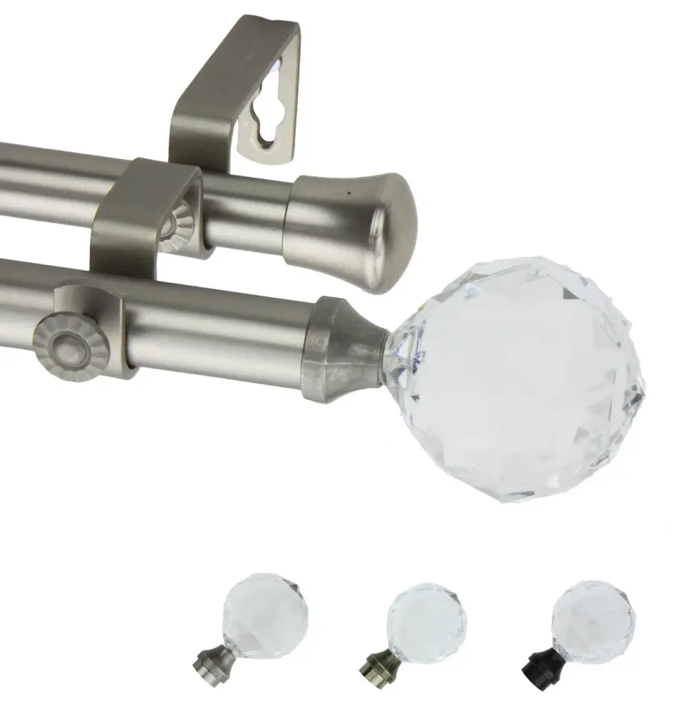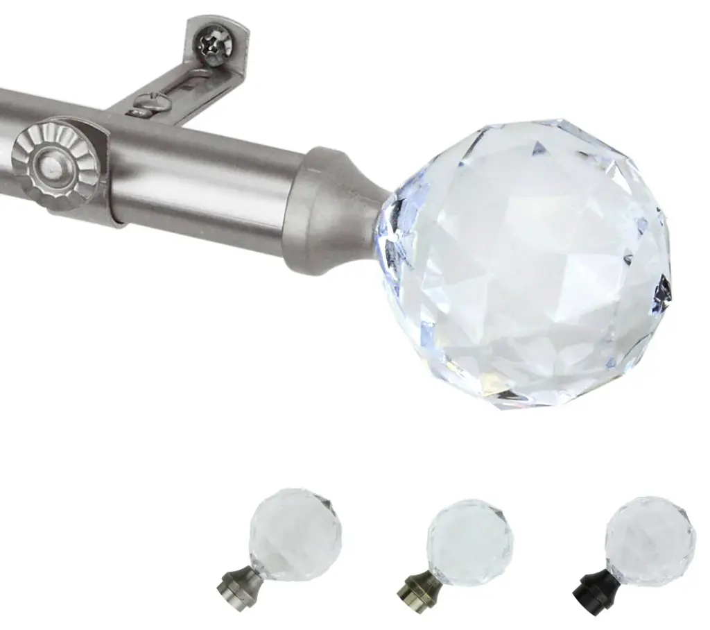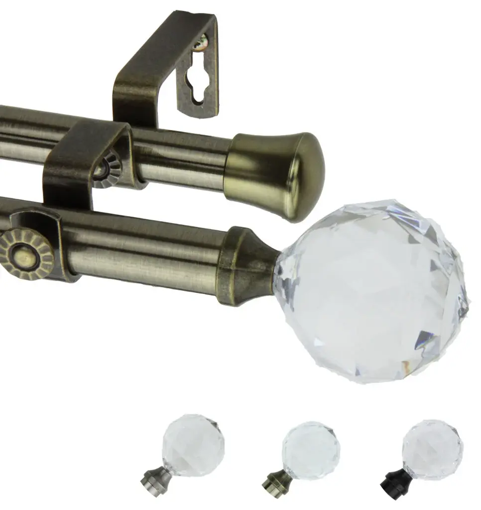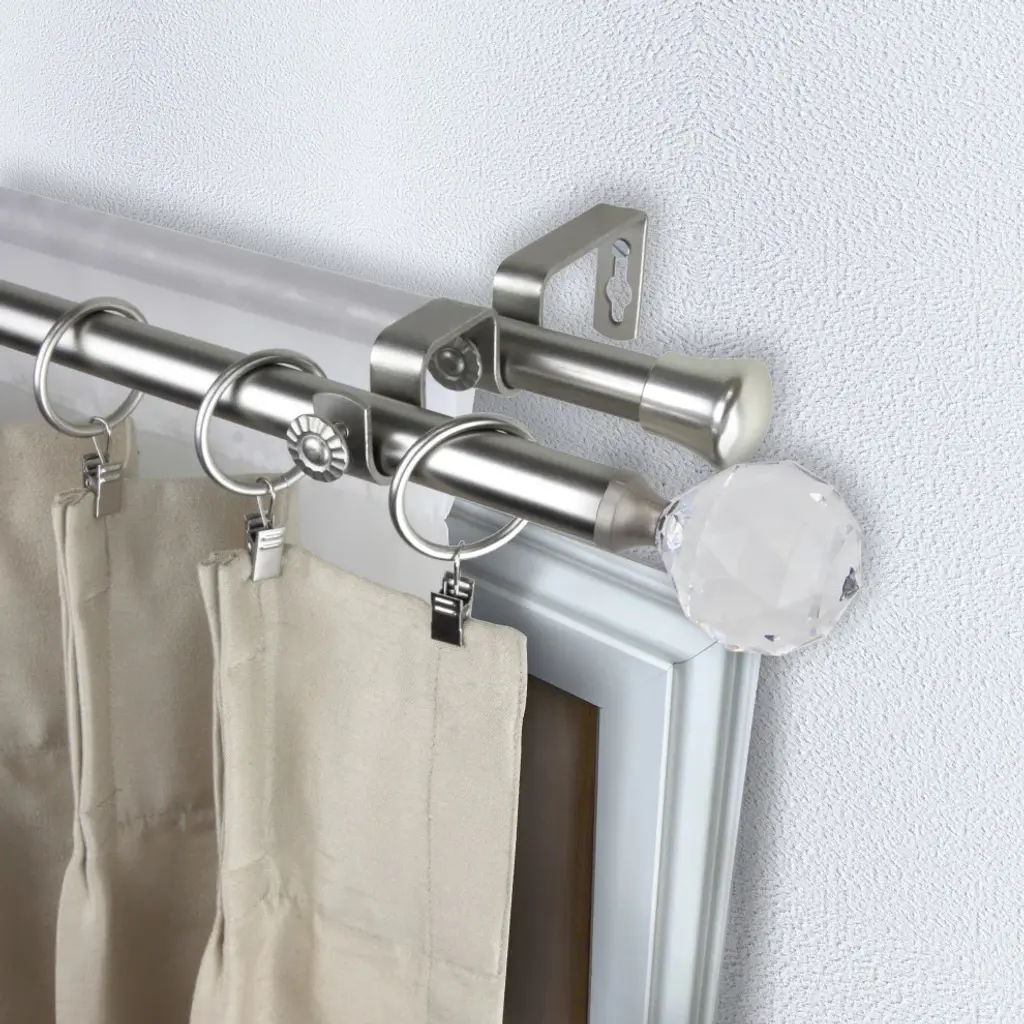 Introduce an elegant touch to your window treatment with this beautiful 13/16" diameter double curtain rod set, made of high quality steel rods. Includes 2 telescoping steel pole, mounting hardware, brackets, and 2 finials Projection: 2.875" Finial measurement: 3" W x 2.25" H x 2.25" D