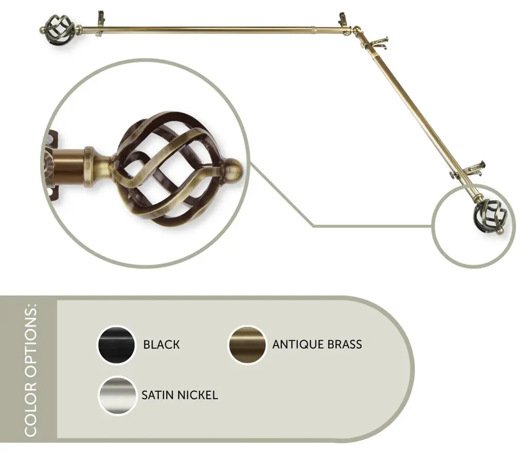Easily and effortlessly decorate your corner windows with our new telescoping corner rods. Two 13/16" curtain rods attach via corner ball connector that allows for nearly 360 degrees of rotation. These high quality steel rods are accented with decorative finial end pieces.