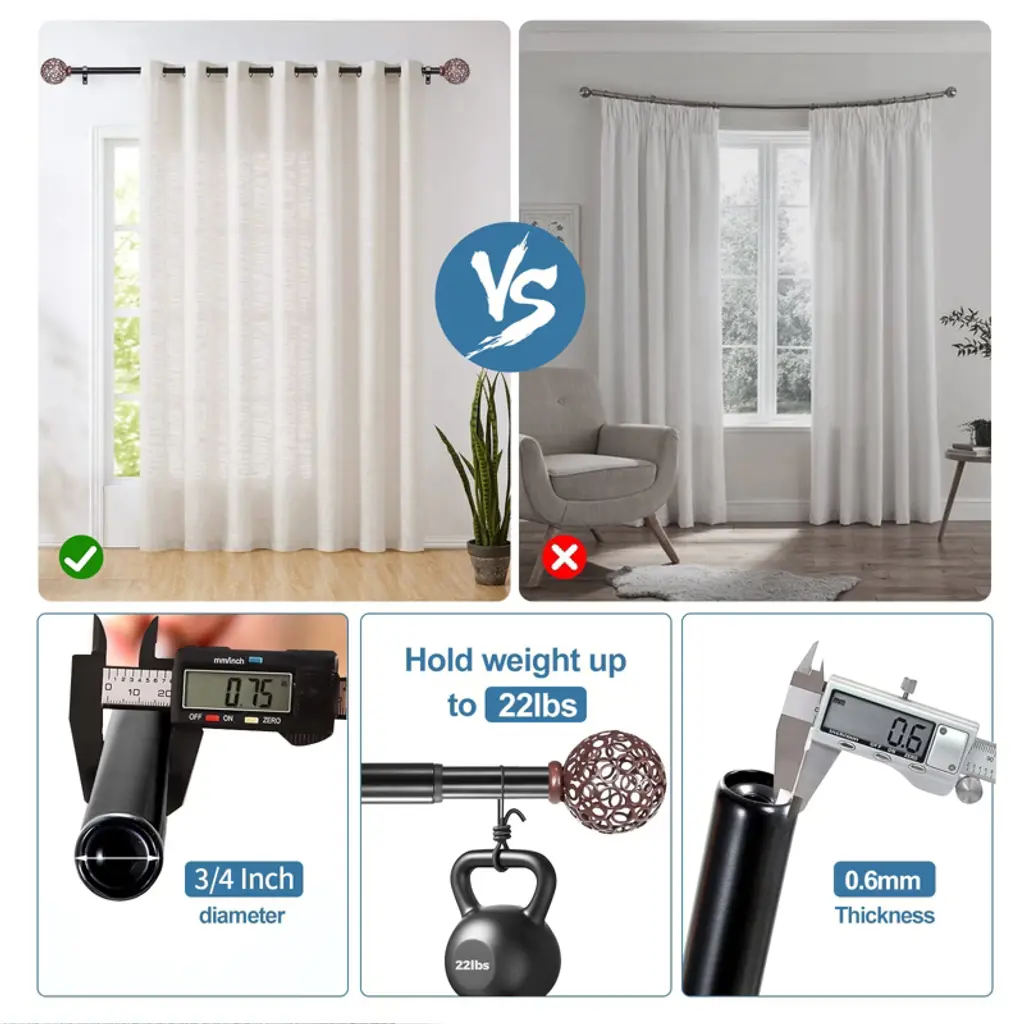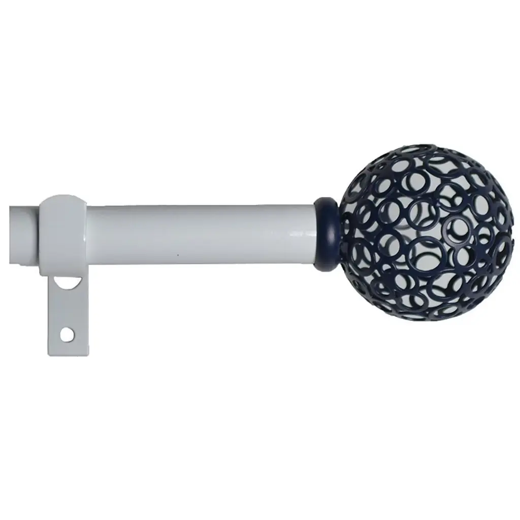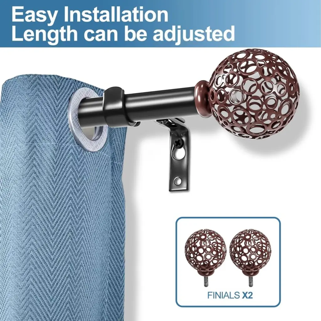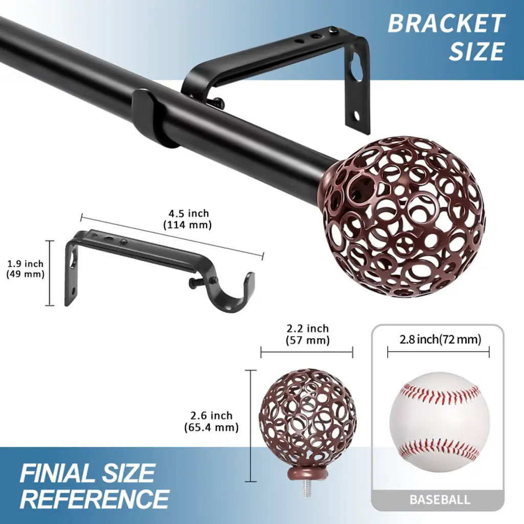 Bring a designer's touch to your window treatments with the planet ball finial Rod Set. Steel adjustable rod. Outer rod measures 3/4" diameter, inner rod measures 5/8" diameter. Finial size: 2 1/4" diameter, 2 1/2" length. Mounting hardware included: standard matching brackets extend from 4" to 5.5". Two brackets come with 28"-48" set, three brackets come with both 48"-84" and 84"-120" lengths.