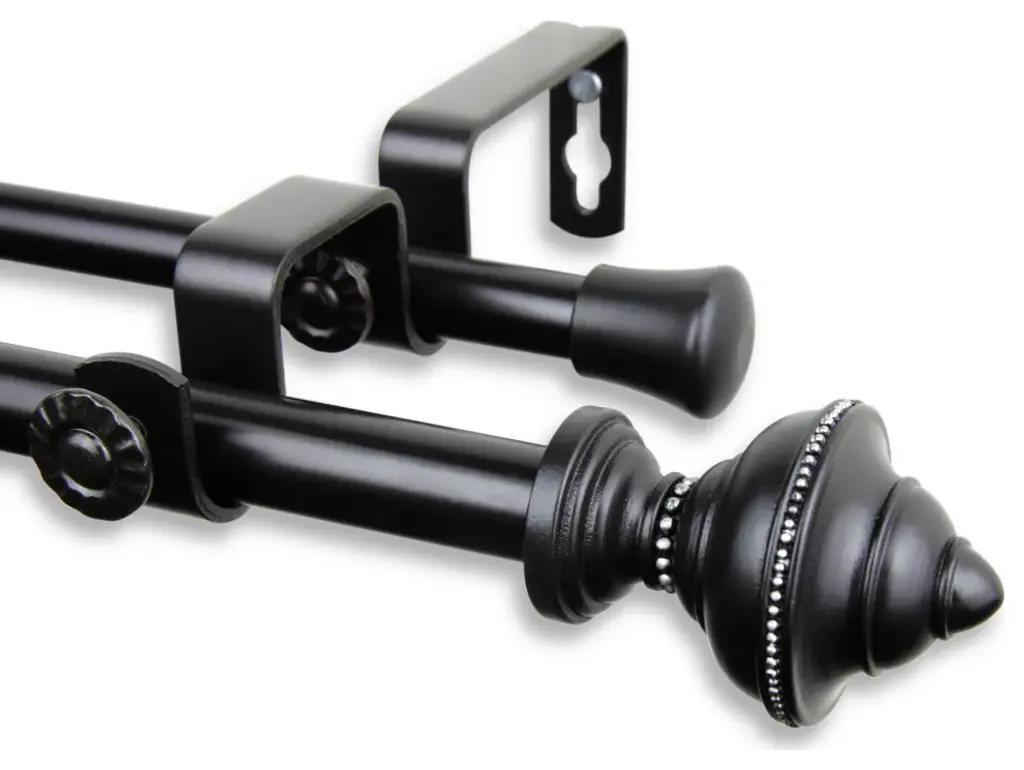 Urn 1" Double Curtain Rod, Black, Black, 28"-48"