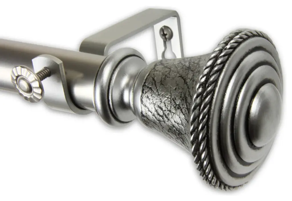 Urn 1" Double Curtain Rod, Black, Satin Nickel, 66"-120"