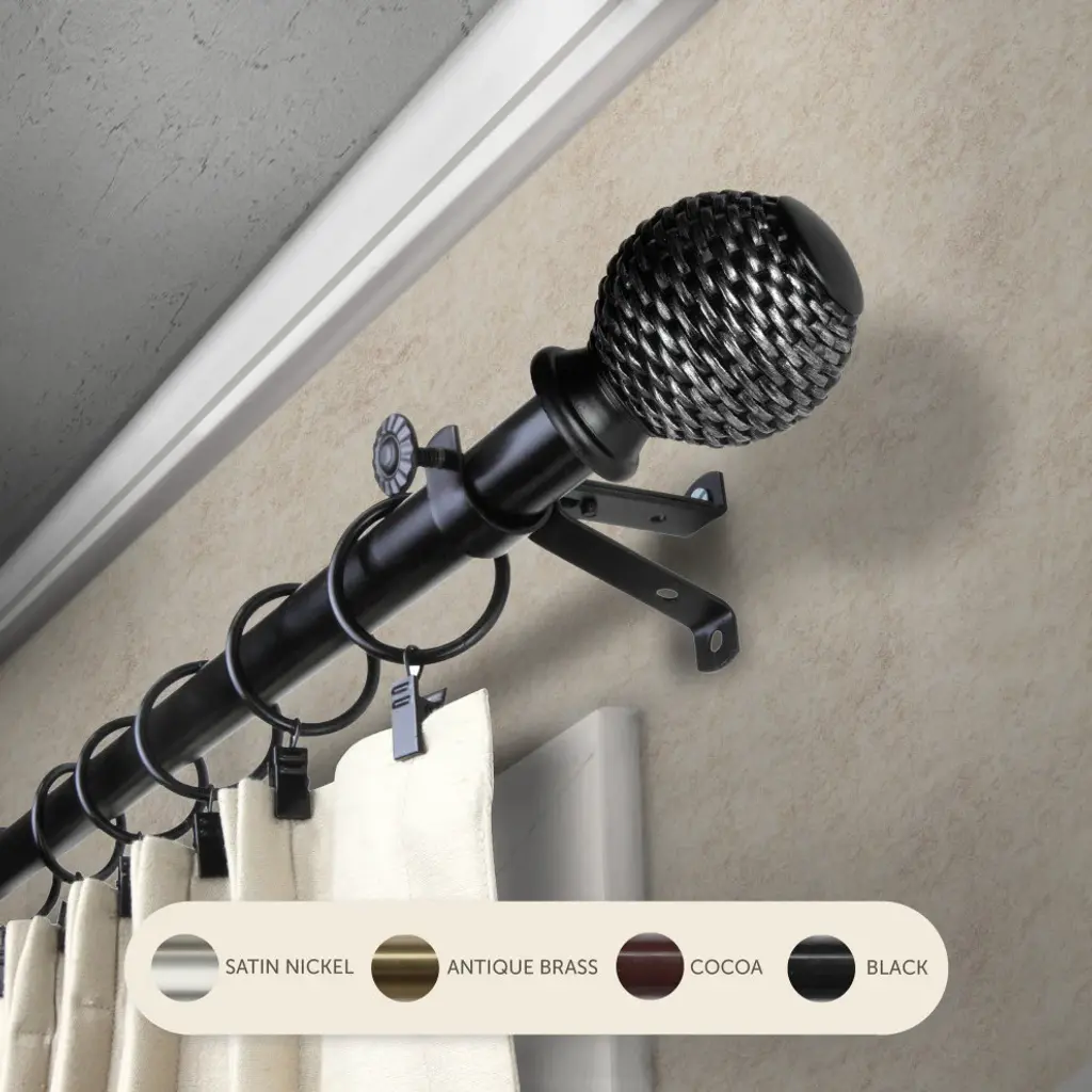 Vanna 13/16" Curtain Rod, Black, 120-170"