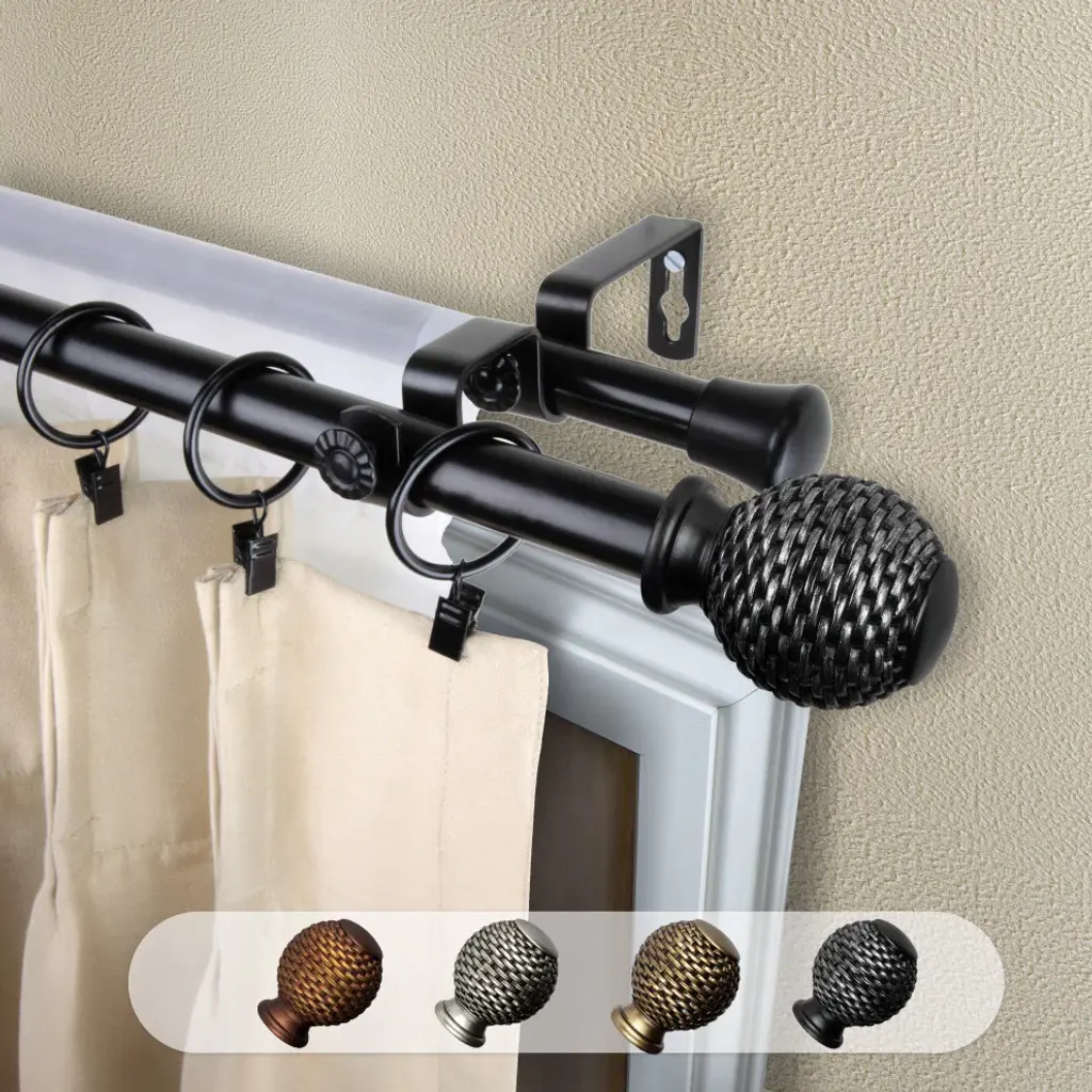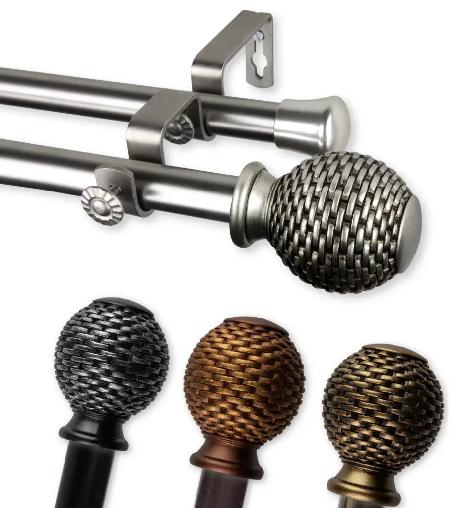 Central Design Products presents the perfect enhancement to your window treatment with high-end quality Double Curtain Rods. Designed to add a modern touch to any window. Includes 2 curtain rods of 13/16" diameter, 3 brackets, and mounting hardware. Projection: 6.375" Front rod to wall, 3.75" Back rod to wall Rod Diameter: 13/16" Material: Steel Color: Black