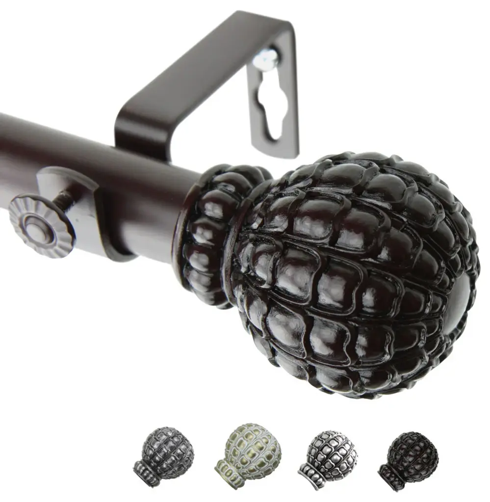 Central Design Products is thrilled to present our top-of-the-line Single Curtain Rods, the ultimate addition to any window treatment. Our high-quality rods are crafted with precision to provide a sleek and modern look to your home decor. Each set includes a single curtain rod, finials, sturdy mounting brackets, and all necessary mounting hardware. The elegant color of our curtain rods adds a touch of sophistication to your space. Upgrade your window treatment with Central Design Products'' Single Curtain Rods today! Includes 1 curtain rod of 1" diameter, finials, mounting brackets, and mounting hardware. Size: 48-84" Projection: 3.625" Rod Diameter: 1" Material: Steel