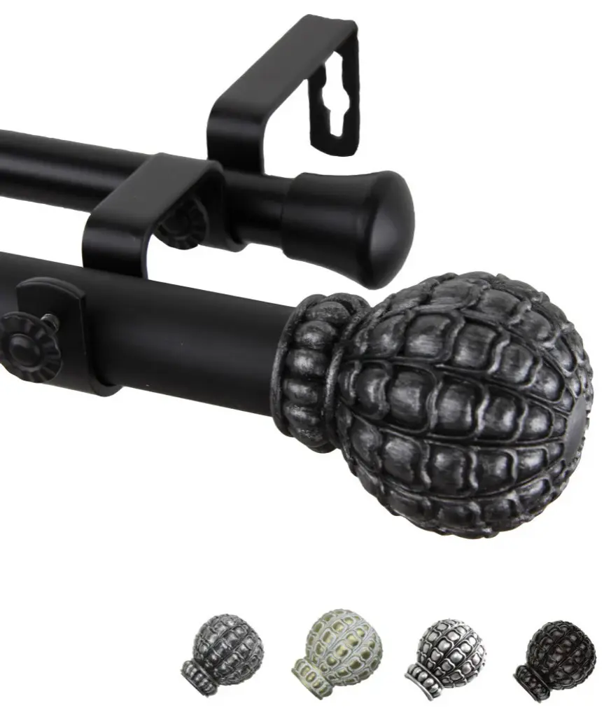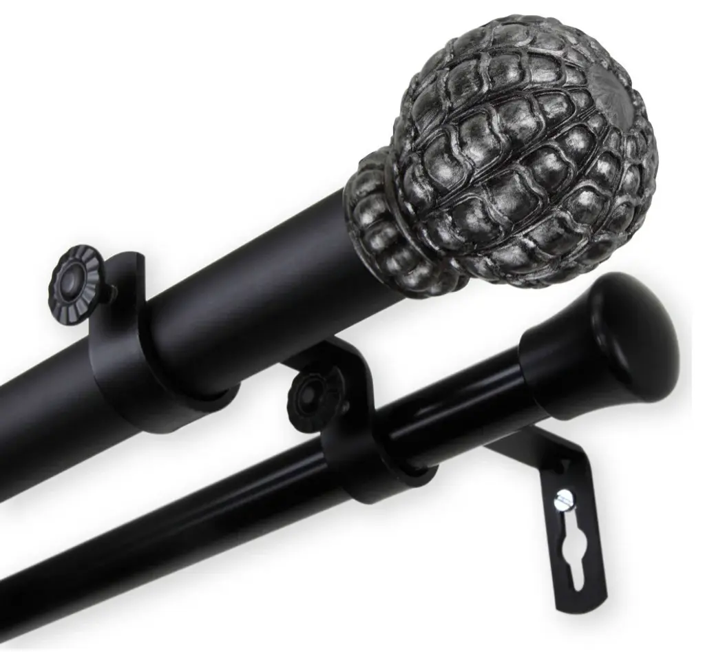 Central Design Products is thrilled to present our top-of-the-line Double Curtain Rods, the ultimate addition to any window treatment. Our high-quality rods are crafted with precision to provide a sleek and modern look to your home decor. Each set includes a double curtain rod, finials, sturdy mounting brackets, and all necessary mounting hardware. The elegant color of our curtain rods adds a touch of sophistication to your space. Upgrade your window treatment with Central Design Products'' Double Curtain Rods today! Includes 1 curtain rod of 1" diameter, one curtain rod of 13/16" diameter, finials, endcaps, mounting brackets, and mounting hardware. Size: 160-240" Projection: 6.75" Front Rod Diameter: 1" / Back Rod Diameter: 13/16" Material: Steel