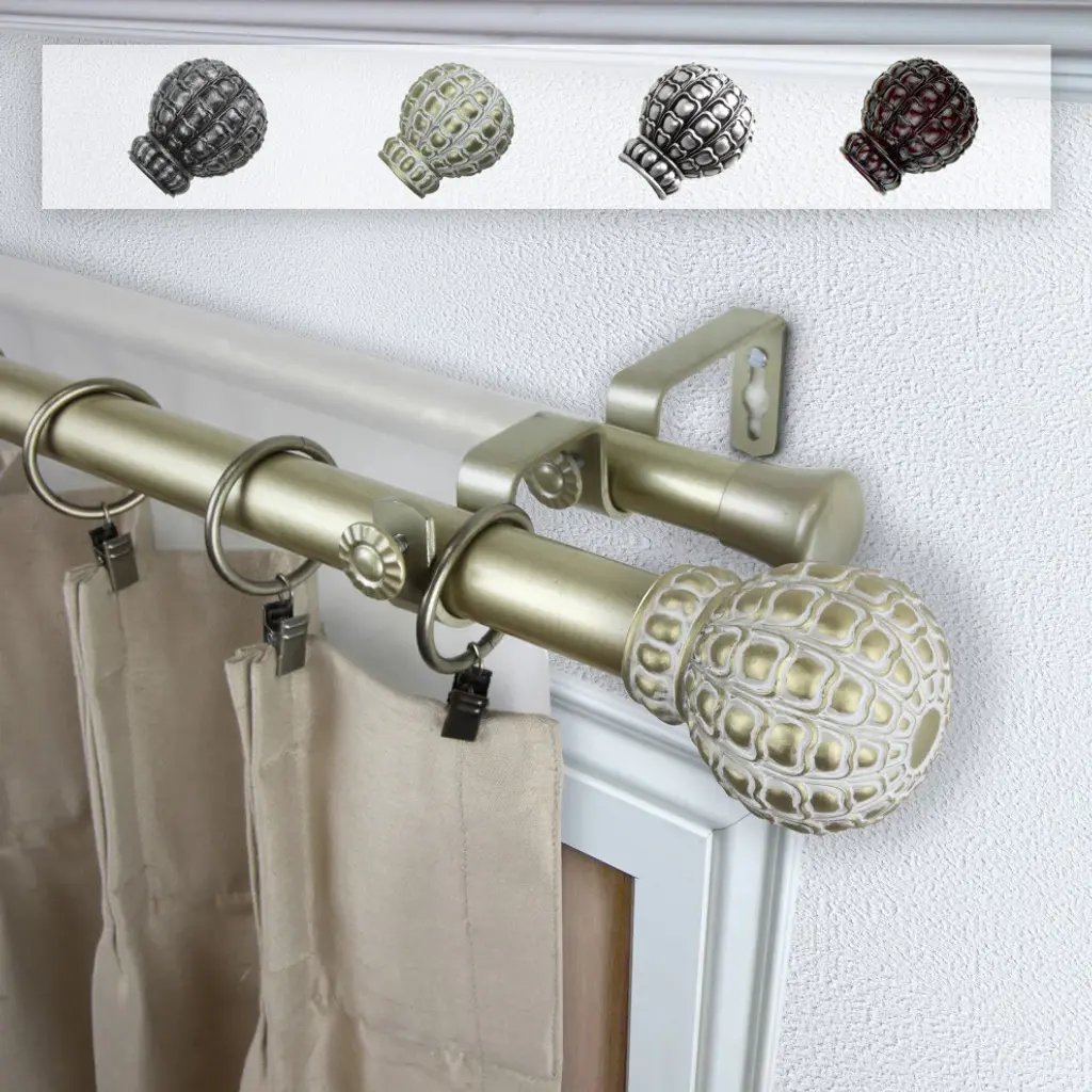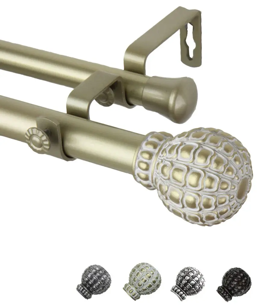 Central Design Products is thrilled to present our top-of-the-line Double Curtain Rods, the ultimate addition to any window treatment. Our high-quality rods are crafted with precision to provide a sleek and modern look to your home decor. Each set includes a double curtain rod, finials, sturdy mounting brackets, and all necessary mounting hardware. The elegant color of our curtain rods adds a touch of sophistication to your space. Upgrade your window treatment with Central Design Products'' Double Curtain Rods today! Includes 1 curtain rod of 1" diameter, one curtain rod of 13/16" diameter, finials, endcaps, mounting brackets, and mounting hardware. Size: 160-240" Projection: 6.75" Front Rod Diameter: 1" / Back Rod Diameter: 13/16" Material: Steel