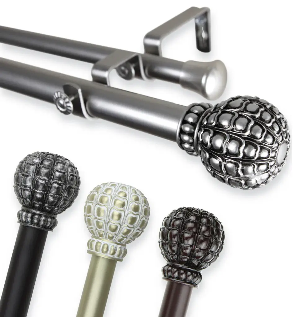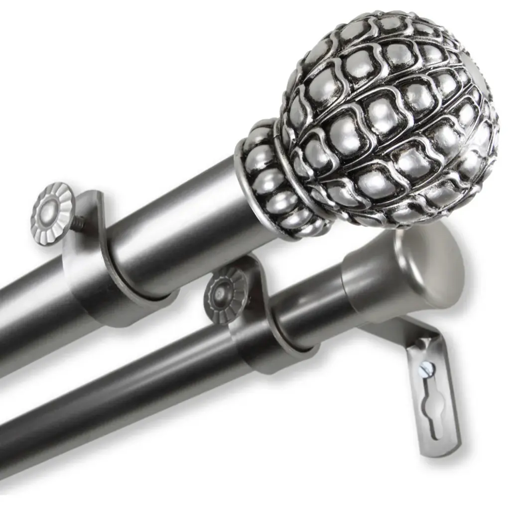 Central Design Products is thrilled to present our top-of-the-line Double Curtain Rods, the ultimate addition to any window treatment. Our high-quality rods are crafted with precision to provide a sleek and modern look to your home decor. Each set includes a double curtain rod, finials, sturdy mounting brackets, and all necessary mounting hardware. The elegant color of our curtain rods adds a touch of sophistication to your space. Upgrade your window treatment with Central Design Products'' Double Curtain Rods today! Includes 1 curtain rod of 1" diameter, one curtain rod of 13/16" diameter, finials, endcaps, mounting brackets, and mounting hardware. Size: 160-240" Projection: 6.75" Front Rod Diameter: 1" / Back Rod Diameter: 13/16" Material: Steel
