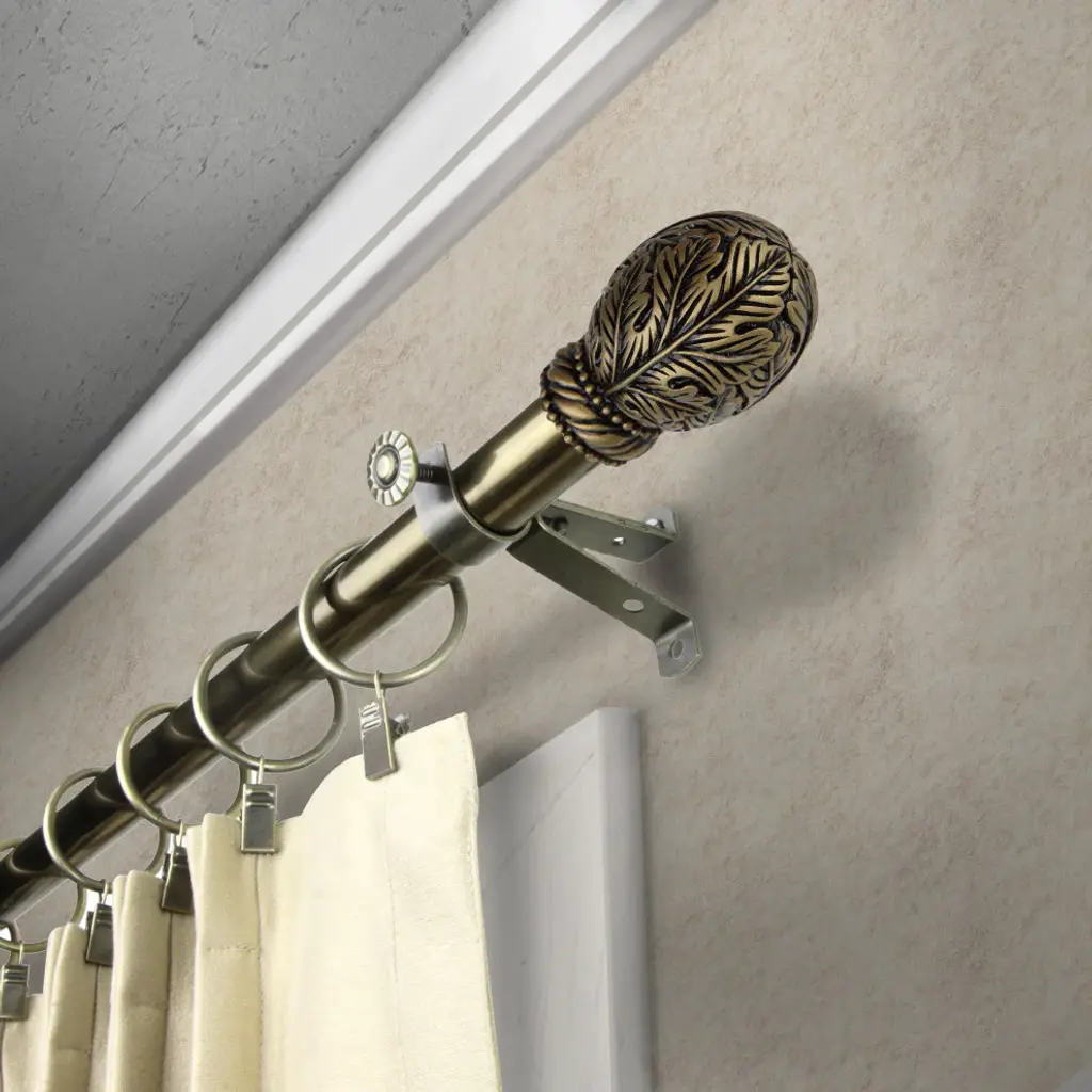 Introduce an elegant touch to your window treatment with this beautiful 13/16" diameter curtain rod set, made of high quality steel rods. Includes telescoping steel pole, mounting hardware, brackets, and 2 finials Projection: 2.875" Finial measurement: 2.5" W x 1.7" H x 1.7" D