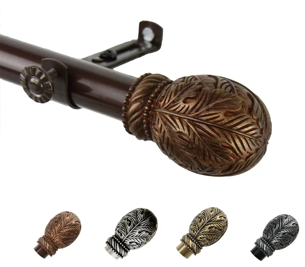 Introduce an elegant touch to your window treatment with this beautiful 13/16" diameter curtain rod set, made of high quality steel rods. Includes telescoping steel pole, mounting hardware, brackets, and 2 finials Projection: 2.875" Finial measurement: 2.5" W x 1.7" H x 1.7" D
