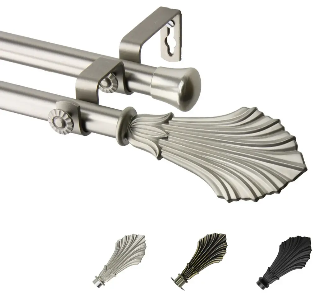 Introduce an elegant touch to your window treatment with this beautiful 13/16" diameter double curtain rod set, made of high quality steel rods. Includes 2 telescoping steel pole, mounting hardware, brackets, and 2 finials Projection: 2.875" Finial measurement: 2.5" W x 1.7" H x 1.7" D
