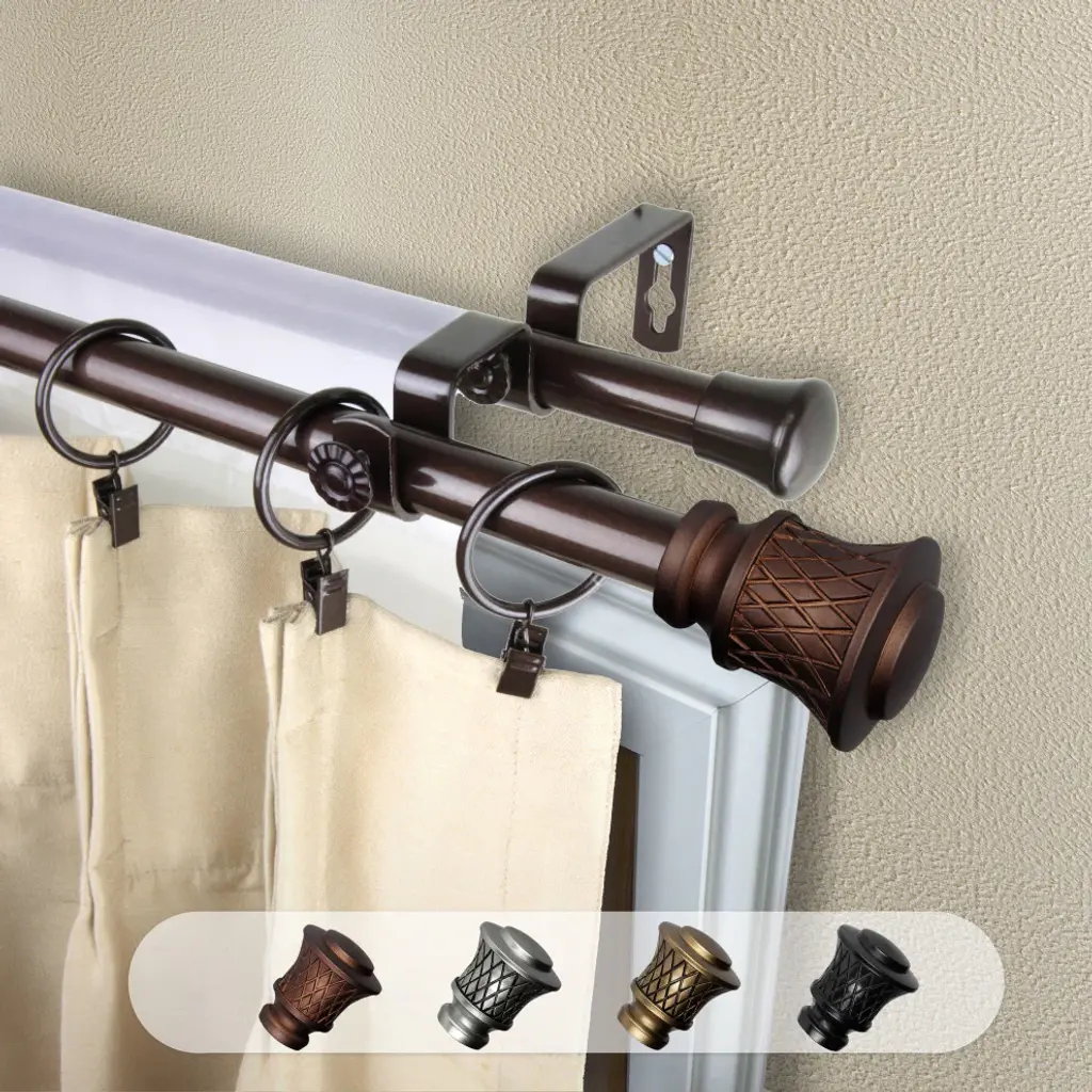 Central Design Products presents the perfect enhancement to your window treatment with high-end quality Double Curtain Rods. Designed to add a modern touch to any window. Includes 2 curtain rods of 13/16" diameter, 4 brackets, and mounting hardware. Projection: 6.375" Front rod to wall, 3.75" Back rod to wall Rod Diameter: 13/16" Material: Steel Color: Cocoa