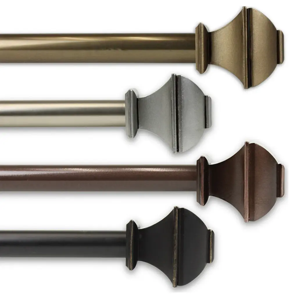 Introduce an elegant touch to your window treatment with this beautiful 13/16" diameter curtain rod set, made of high quality steel rods. Includes telescoping steel pole, mounting hardware, brackets, and 2 finials Projection: 2.875" Finial measurement: 2.5" W x 2.75" H x 2.33" D