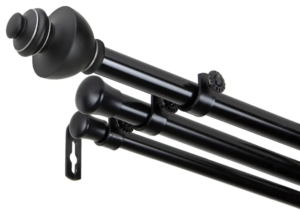Vicky 13/16" Triple Curtain Rod, Black, 28-48"