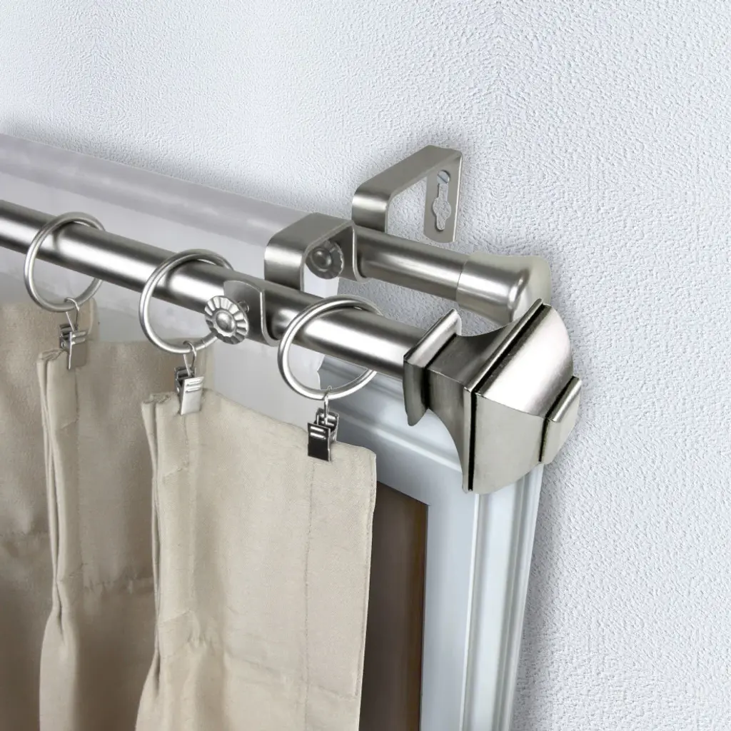 Introduce an elegant touch to your window treatment with this beautiful 13/16" diameter double curtain rod set, made of high quality steel rods. Includes 2 telescoping steel pole, mounting hardware, brackets, and 2 finials Projection: 2.875" Finial measurement: 2.5" W x 2.75" H x 2.33" D