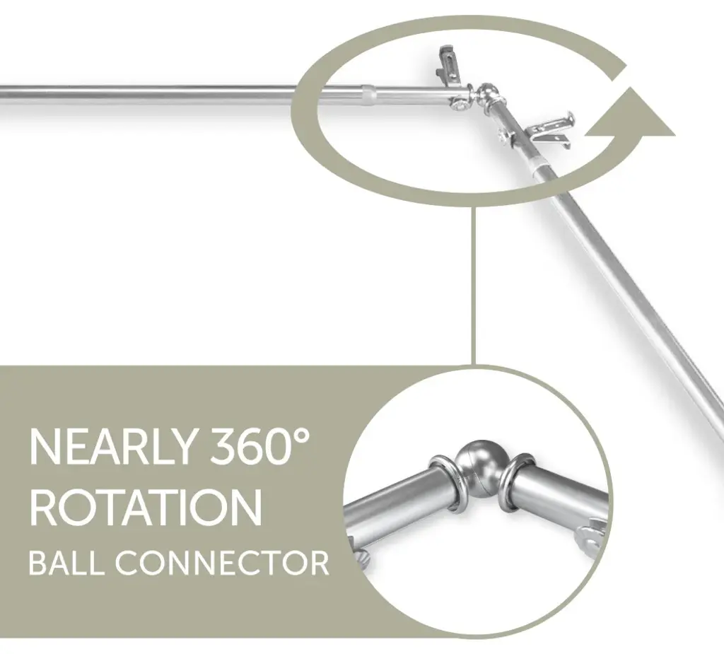 Our Multi Sided Bay Window Rod are the perfect way to decorate a multi-sided bay window with a stylist touch not often found. Offered in 3 different variations, 4, 5 and 6-sided rods can be used for multi window and bay windows. Rods connect using our corner connector which allows for a nearly 360 rotation.Includes six 13/16" diameter rods, 2 finials, 5 corner connectors, and mounting hardwareRod Projection: 2.875"Finial Measurement: 5" W X 1-5/8" H x 1-5/8" DEach rod extends from 28-48"Steel Rod and Resin Finial Instruction Included
