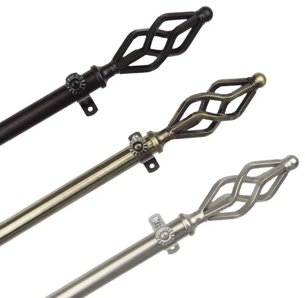 Central Design Products is pleased to introduce our designer-looking adjustable 13/16 Diameter Double Drapery Rod made with high quality steel pole. Includes one 13/16 in. diameter telescoping rod, 2-finials, mounting brackets and mounting hardwareProjections: 2.875 inches Finial Measurement : 2-1/2 inches W x 2-1/8 inches H x 2-1/8 inches DEach rod extend from 28-48 inchesSteel Rod and Resin FinialInstallation Instructions Included