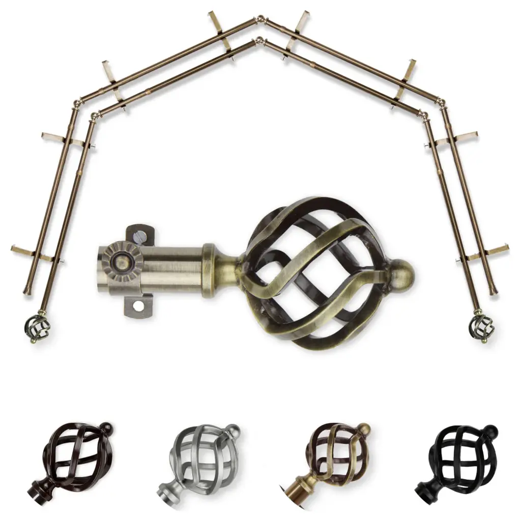 Walter 5-Sided Double Bay Curtain Rod - Antique Brass