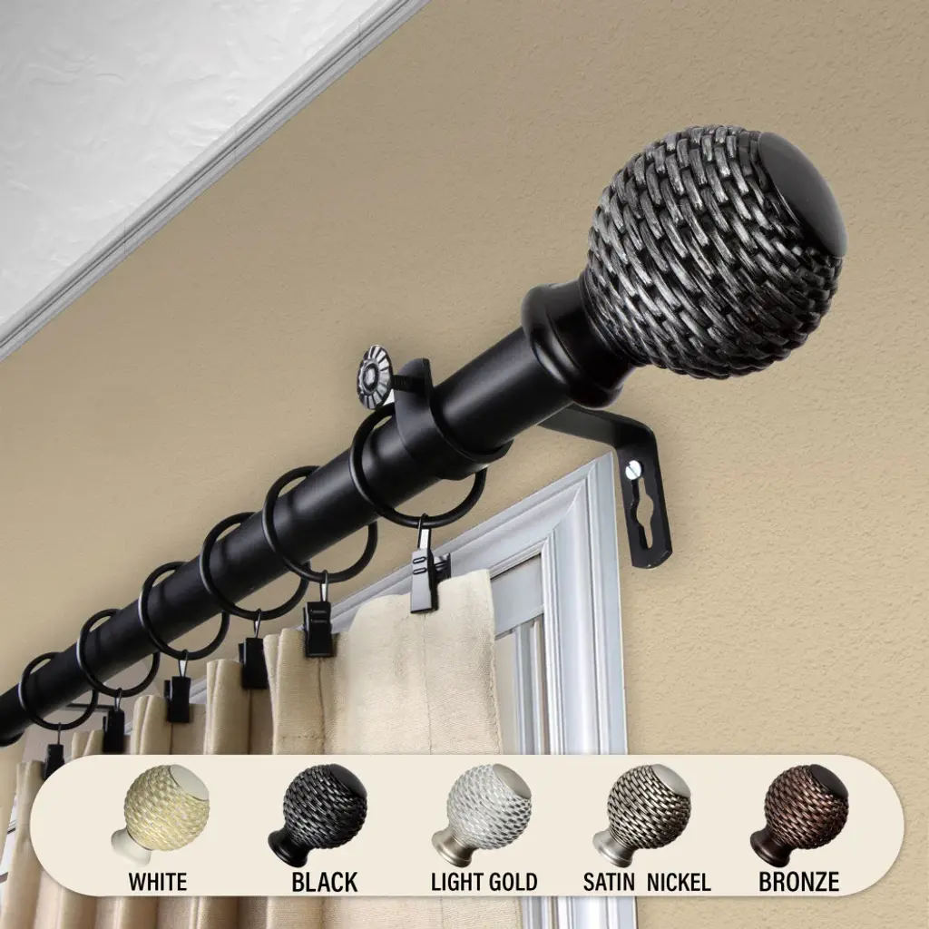 Wicker 1" Curtain Rod, Black, 160-240"