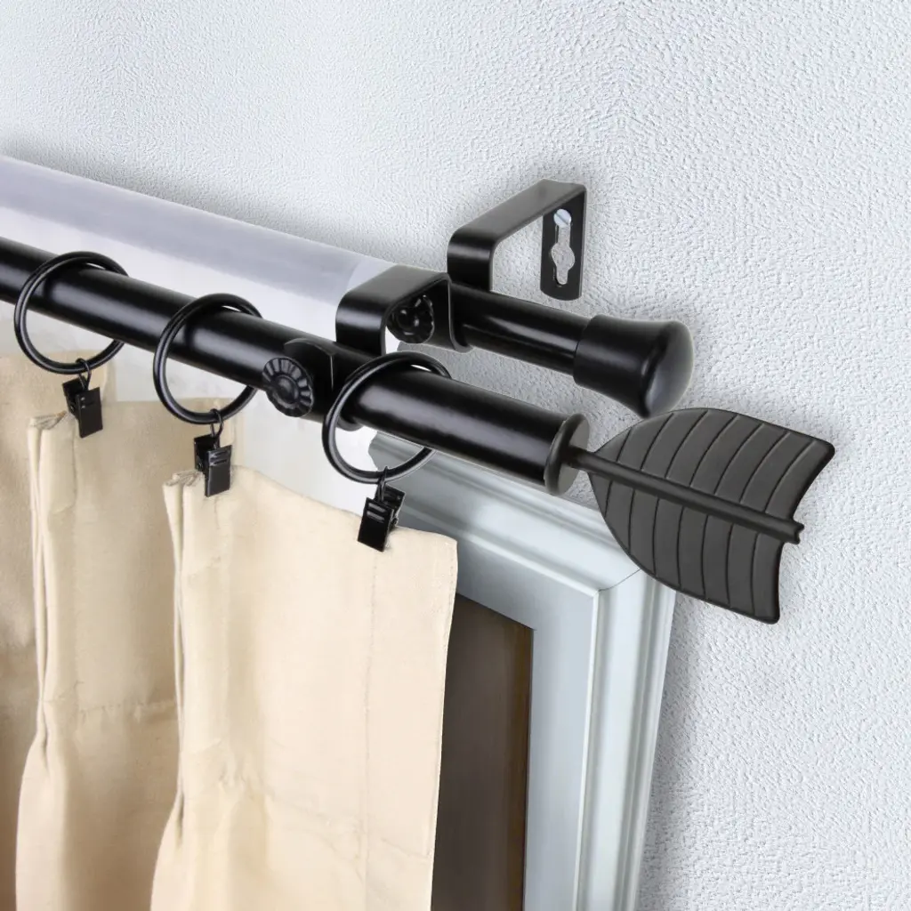 Introduce an elegant touch to your window treatment with this beautiful 13/16" diameter double curtain rod set, made of high quality steel rods. Includes 2 telescoping steel pole, mounting hardware, brackets, and 2 finials Projection: 2.875" Finial measurement: 3" W x 2.25" H x .188" D