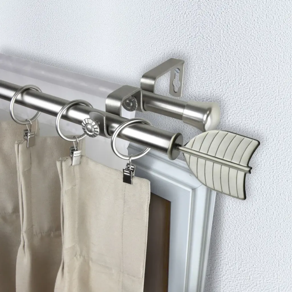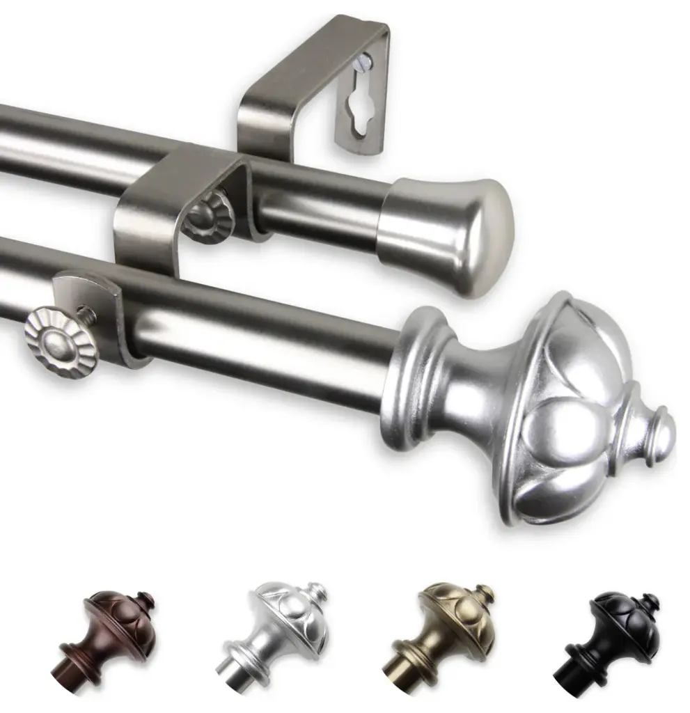 Introduce an elegant touch to your window treatment with this beautiful 13/16" diameter double curtain rod set, made of high quality steel rods. Includes 2 telescoping steel pole, mounting hardware, brackets, and 2 finials Projection: 2.875" Finial measurement: 3" W x 2.25" H x .188" D