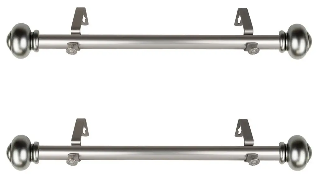 This side mount curtain rod will add alluring style and refined touch to your window treatment and home decor.Includes two 1" diameter telescoping 12-20 inches rod, four finials, four side mount brackets and mounting hardware.Finial Measurement: 2-1/2"W x 2-1/4"H x 2-1/4"D.Bracket Projection: 3.625 inches.Installation instructions included.Steel Rod and Resin Finials
