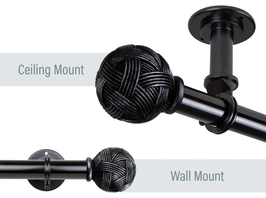 This side mount curtain rod will add alluring style and refined touch to your window treatment and home decor.Includes two 1" diameter telescoping 12-20 inches rod, four finials, four side mount brackets and mounting hardware.Finial Measurement: 2-1/2"W x 2-1/4"H x 2-1/4"D.Bracket Projection: 3.625 inches.Installation instructions included.Steel Rod and Resin Finials
