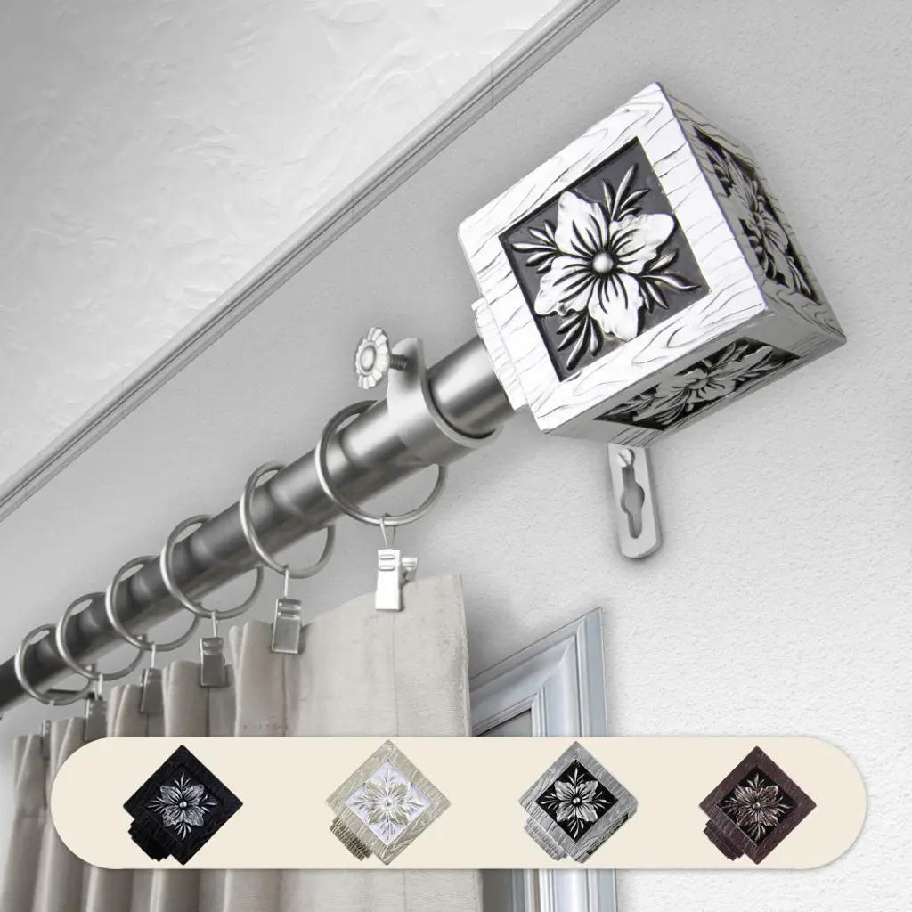 Central Design Products is thrilled to present our top-of-the-line Single Curtain Rods, the ultimate addition to any window treatment. Our high-quality rods are crafted with precision to provide a sleek and modern look to your home decor. Each set includes a single curtain rod, finials, sturdy mounting brackets, and all necessary mounting hardware. The elegant color of our curtain rods adds a touch of sophistication to your space. Upgrade your window treatment with Central Design Products'' Single Curtain Rods today! Includes 1 curtain rod of 1" diameter, finials, mounting brackets, and mounting hardware. Size: 120-170" Projection: 3.625" Rod Diameter: 1" Material: Steel