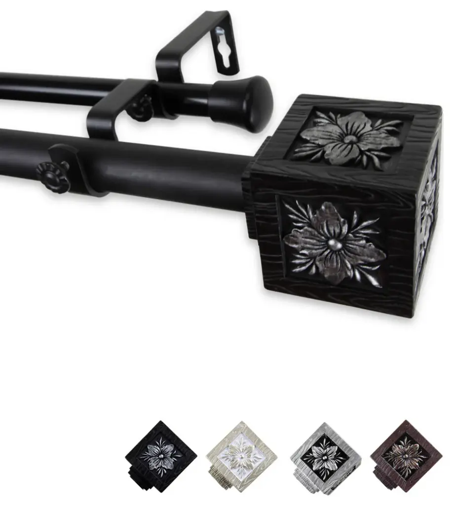 Central Design Products is thrilled to present our top-of-the-line Double Curtain Rods, the ultimate addition to any window treatment. Our high-quality rods are crafted with precision to provide a sleek and modern look to your home decor. Each set includes a double curtain rod, finials, sturdy mounting brackets, and all necessary mounting hardware. The elegant color of our curtain rods adds a touch of sophistication to your space. Upgrade your window treatment with Central Design Products'' Double Curtain Rods today! Includes 1 curtain rod of 1" diameter, one curtain rod of 13/16" diameter, finials, endcaps, mounting brackets, and mounting hardware. Size: 66-120" Projection: 6.75" Front Rod Diameter: 1" / Back Rod Diameter: 13/16" Material: Steel