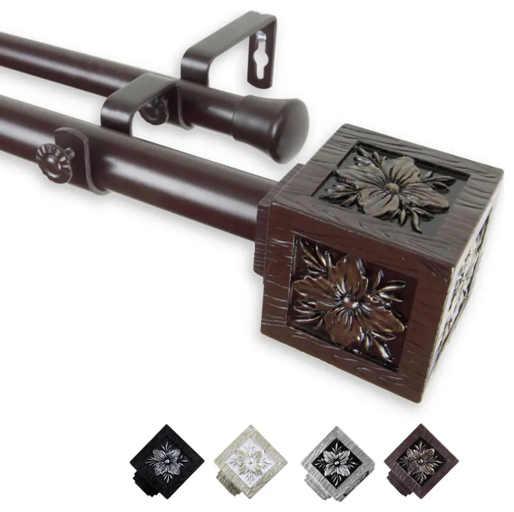 Zula 1" Double Curtain Rod, Mahogany, 28-48"