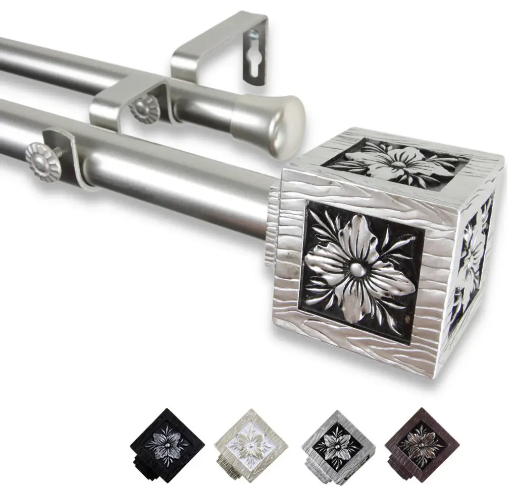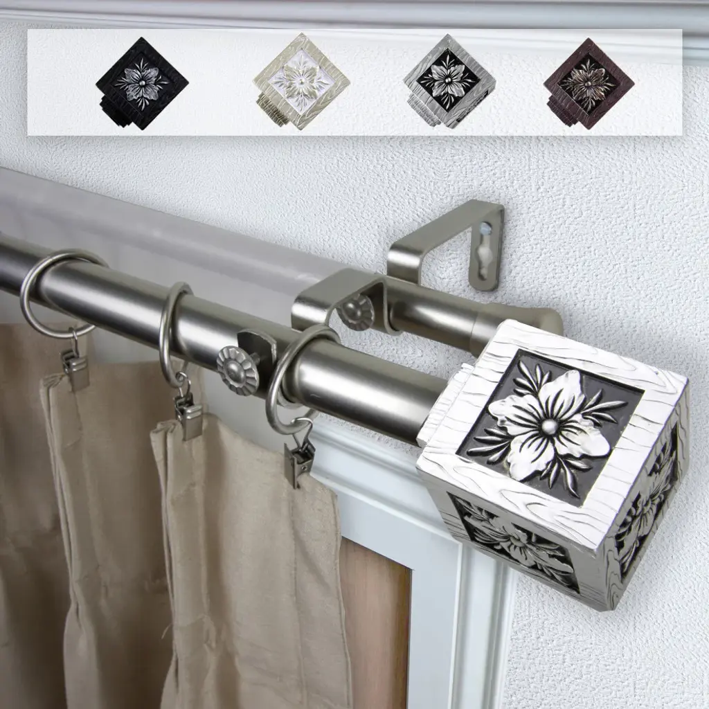 Central Design Products is thrilled to present our top-of-the-line Double Curtain Rods, the ultimate addition to any window treatment. Our high-quality rods are crafted with precision to provide a sleek and modern look to your home decor. Each set includes a double curtain rod, finials, sturdy mounting brackets, and all necessary mounting hardware. The elegant color of our curtain rods adds a touch of sophistication to your space. Upgrade your window treatment with Central Design Products'' Double Curtain Rods today! Includes 1 curtain rod of 1" diameter, one curtain rod of 13/16" diameter, finials, endcaps, mounting brackets, and mounting hardware. Size: 48-84" Projection: 6.75" Front Rod Diameter: 1" / Back Rod Diameter: 13/16" Material: Steel