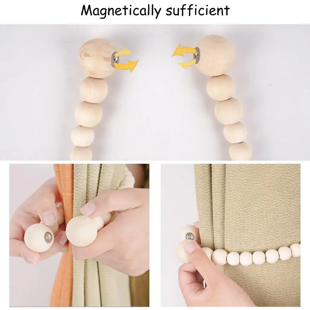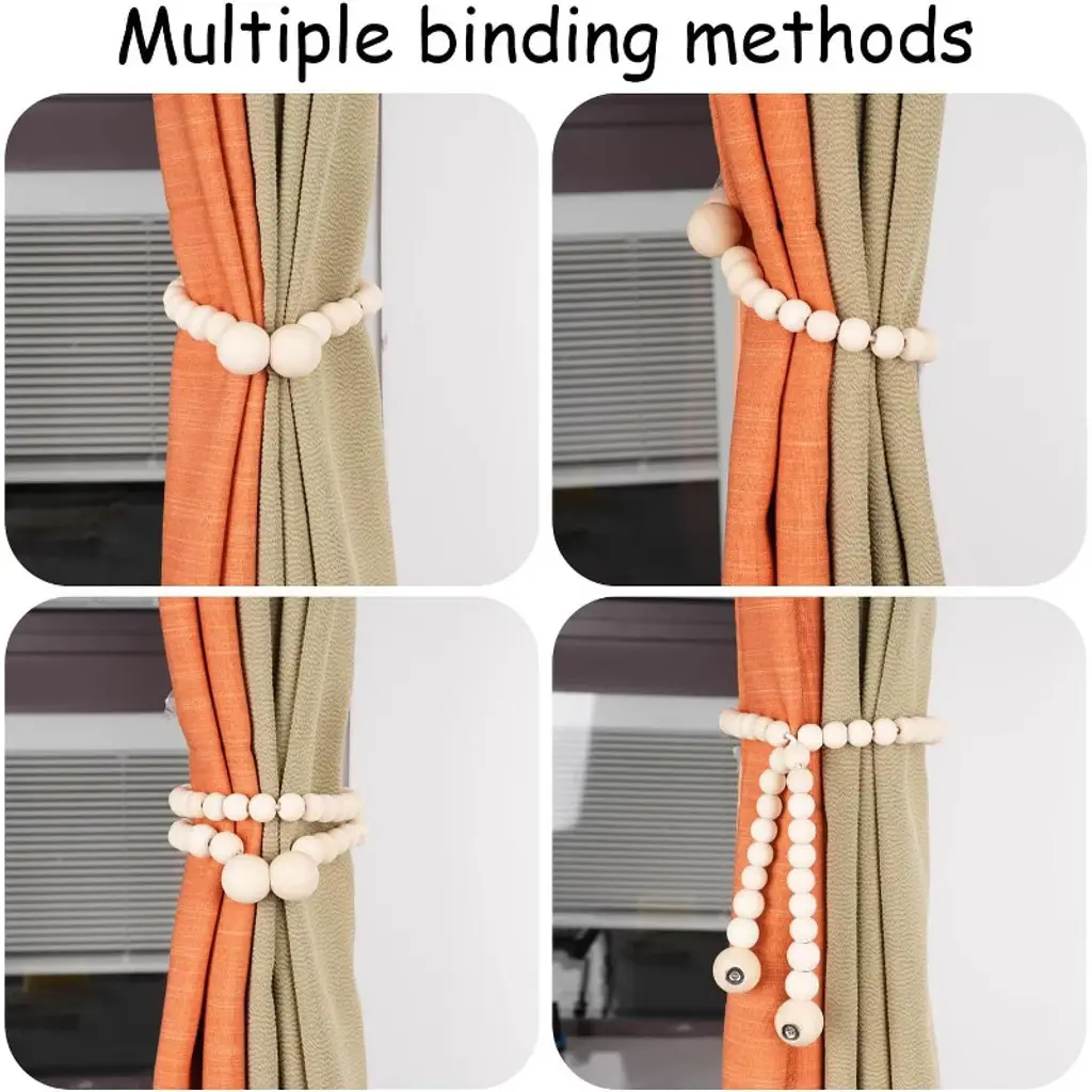 boho curtain tiebacks handmade by 104% natural wooden beads and solid cotton rope which is non-toxic, woody smell, corrosion-resistant, more durable and tighter than others. Non-worry about health/secure when choosing these as indoor or outdoor curtain tiebacks.