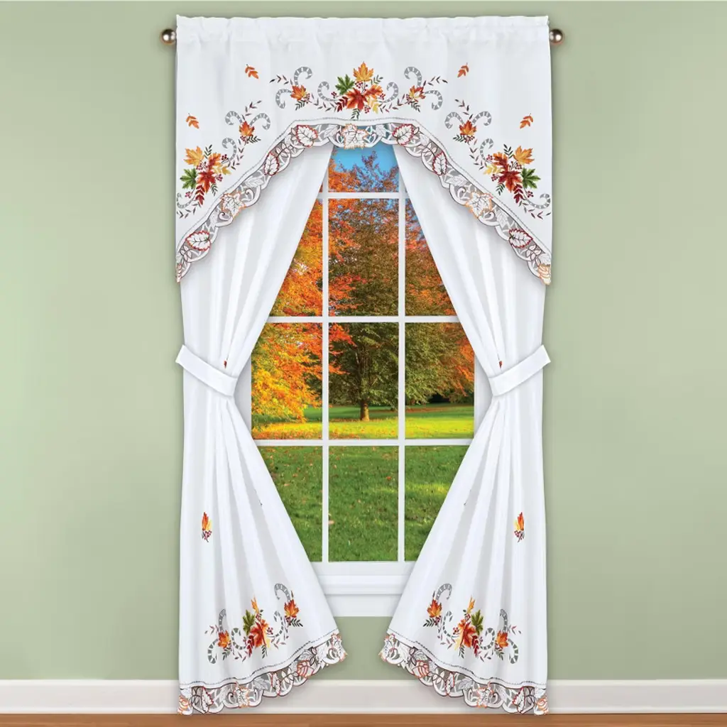 Perfect For The Season, These Beautiful Curtains Feature Festive Bouquets Of Colorful Maple Leaves With Pretty Cutouts And Scrolling Details. They Have A Rod Pocket Top For Easy Hanging, Tiebacks Are Included, And The Panels Are Available In Two Lengths. Panels And Swag Valance Are Sold Separately. Machine Wash. Polyester; Imported. Choose: Swag Valance (34"L X 58"W), 63" Panel (63"L X 42"W) Or 84" Panel (84"L X 42"W).