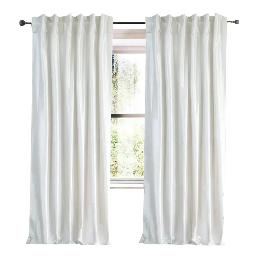 Add splendor to any room in your home with these Tap Top Raw Silk curtains from India. These handmade drapes are Combination of two Color . A classy touch to your home decor with this beautiful raw silk curtain. "Raw Silk" fabric is a heavy weight fabric made from thick yarns. This fabric is good from making luxurious full bodied curtains Indian Selections exclusive Raw Silk Drapery is woven from a blend of silk, rayon, and viscose to achieve the unique slightly nubby fabric in natural organic colors. Each handmade panel features slight variations in texture and thickness reflecting a more contemporary appearance. Raw Silk Curtains / Drapes / Panels are the perfect choice for those looking for light, elegant drapes with a touch of luxury. I Story Behind the Art: The fabric of these curtains are weaved on a hand-loom in a small rural village in India and then hand-dyed. The artisans are a group of young hand- crafters who have moved from small villages to a big town in Central India and make various home decor items out of these exotic sari fabrics. This gives these wonderful artisans a way to have sustainable income via selling to the worldwide market on the internet. Your purchase supports local and home-based work where the artisans can easily tend to their families and pass these time-honored skills from one generation to the next.