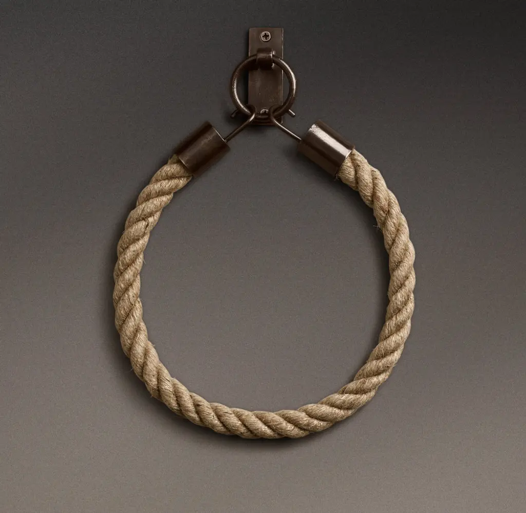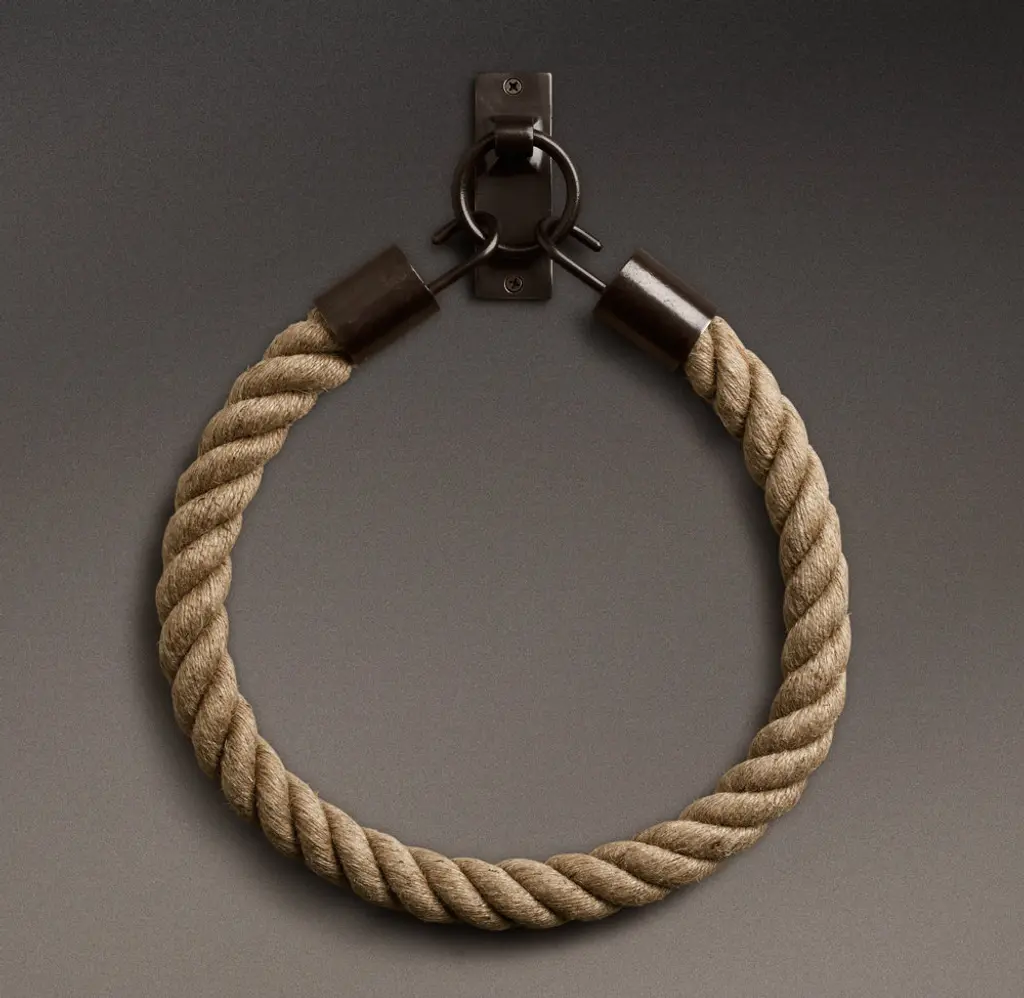 Substantial tieback of rustic hemp rope adds natural texture to a range of drapery.