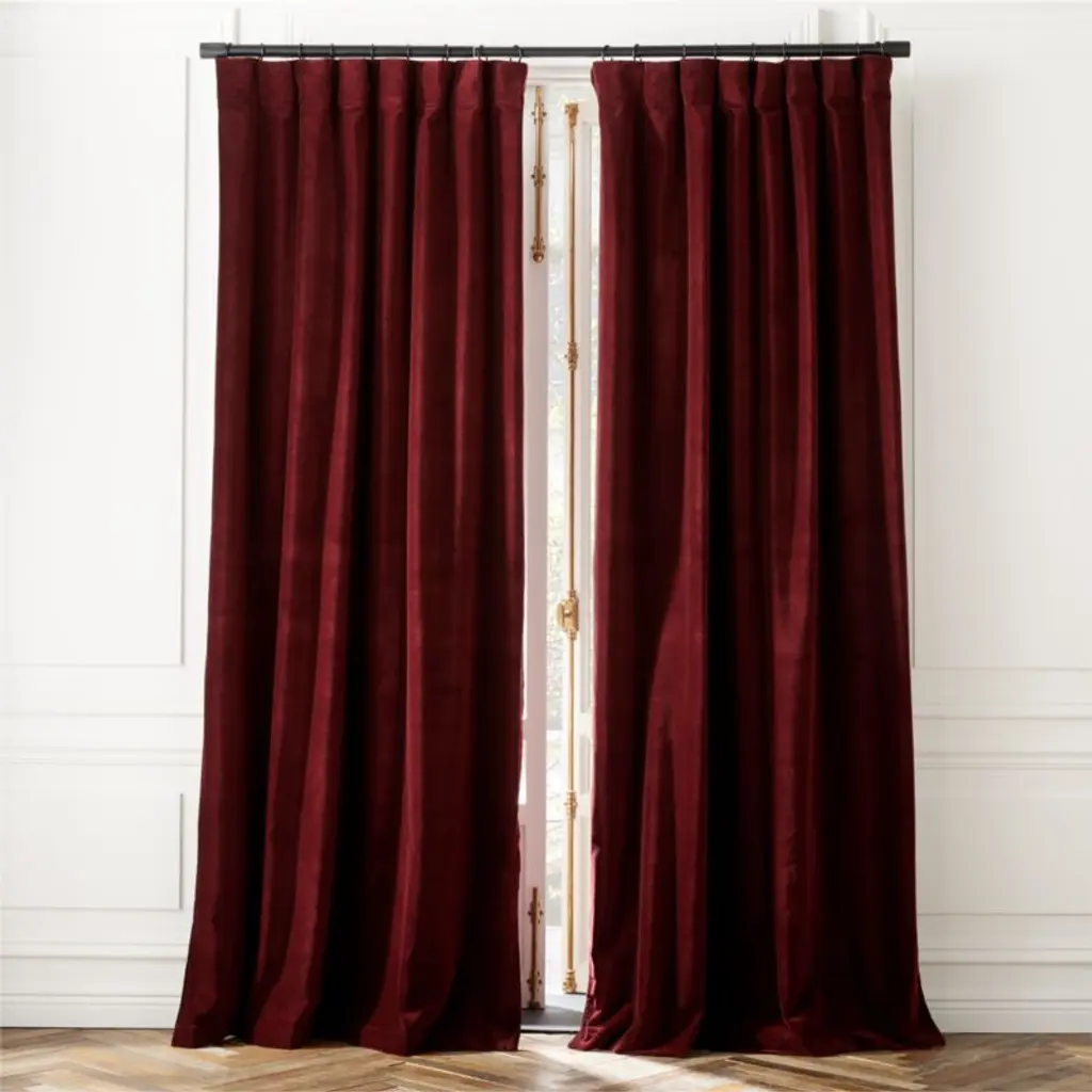 Our velvet curtains, Drapes have a luxuriant, rich look and they are heavy which is great for keeping the light out and the heat in. Velvet refers to the soft, furry covering on deer's antlers and velvet-effect material is produced from woven fabrics made with cotton or man-made fibers such as polyester. Velvet has a soft, deep pile which feels almost furry when you brush hand over it and gives depth and richness to the color with strong contrast between light and dark. Velvet curtains are ideal for bedrooms, living rooms and home theaters as they do keep the room completely dark when they are drawn.
