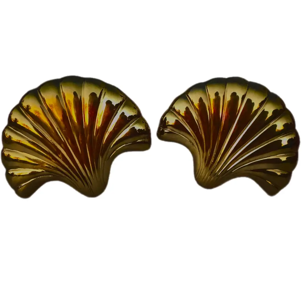 Mid 20th Century Brass Scalloped Shell Curtain Tiebacks- A Pair