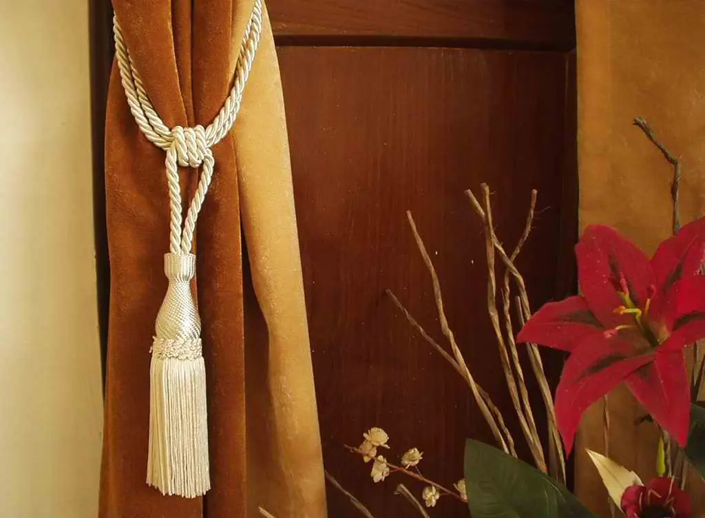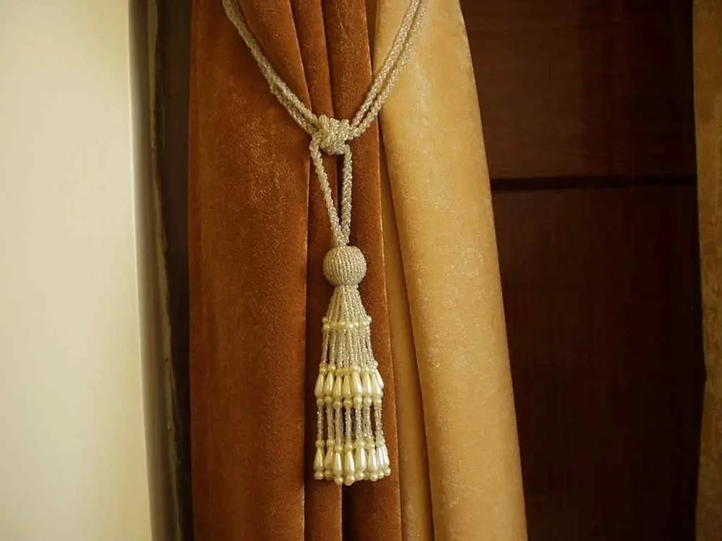 Add a touch of class to your window treatments with our Tie Backs. These stunning tiebacks are hand-handcrafted using rayon cording. These handmade Tiebacks with full tassel and thick cord with a spread will add glamour to any curtain. Add a touch of class to your window treatments with our Tie Backs. These stunning tiebacks are hand-handcrafted using rayon cording. These handmade Tiebacks with full tassel and thick cord with a spread will add glamour to any curtain.