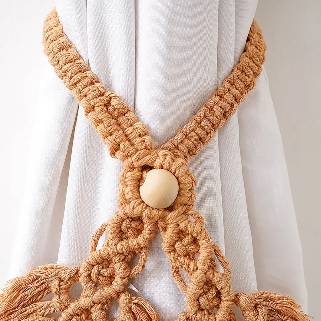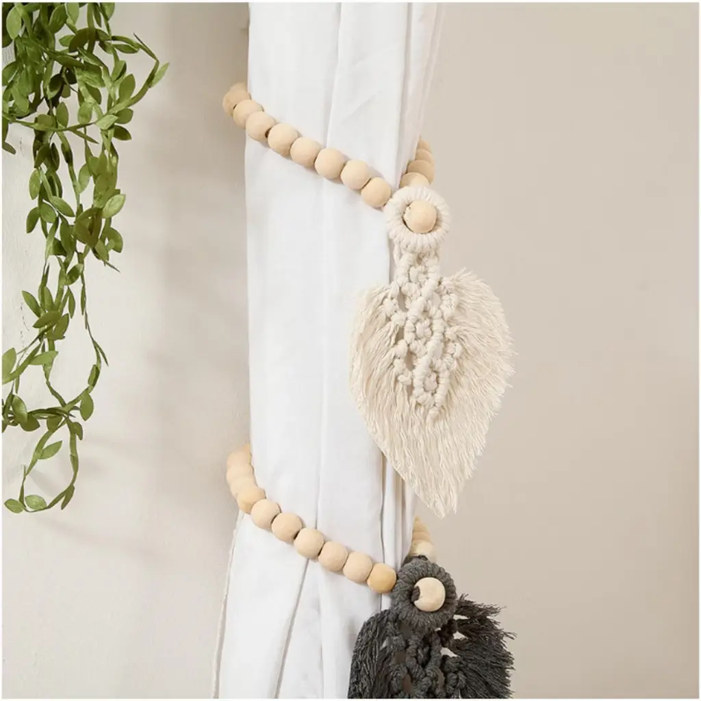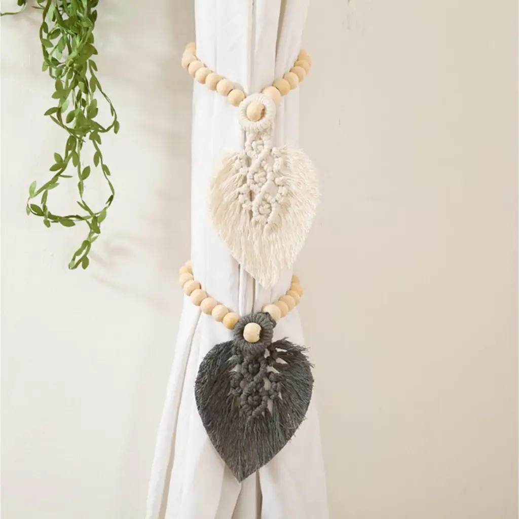 Add a cozy, natural charm to your space with our Handmade Macrame Leaf Curtain Tieback. Woven with care from soft cotton rope and paired with smooth wooden beads, this decorative tieback blends beautifully into boho, rustic, or minimalist interiors. The looped design makes it easy to wrap around your curtains without any hardware, offering both function and style.