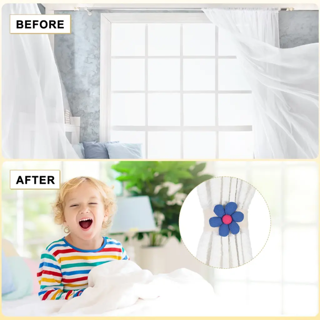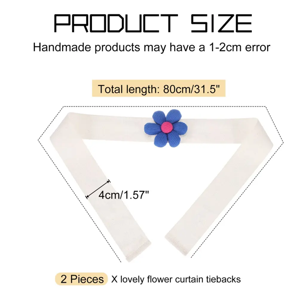 Enhance any space with these cute flower curtain tiebacks. Their compact size and elegant design allow for versatility in decoration. Made from durable cotton, these tiebacks are soft and beautifully handmade, ensuring they last longer without breaking. They are easy to use, requiring no hooks or installation, which prevents damage to walls or curtains. Ideal for various settings, including living rooms, bedrooms, and offices, these tiebacks create a warm and inviting atmosphere. Hand washable for easy upkeep, they are perfect for both everyday and special occasions.