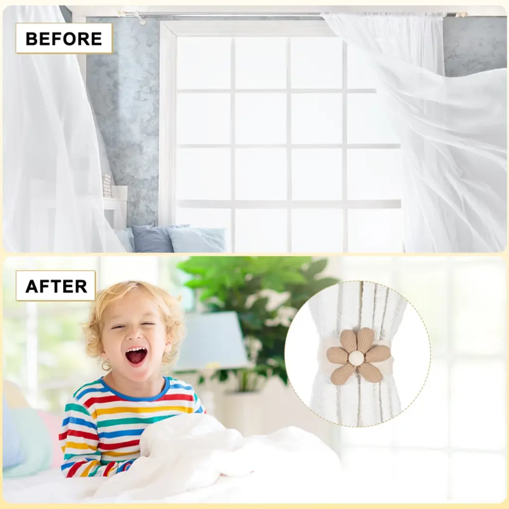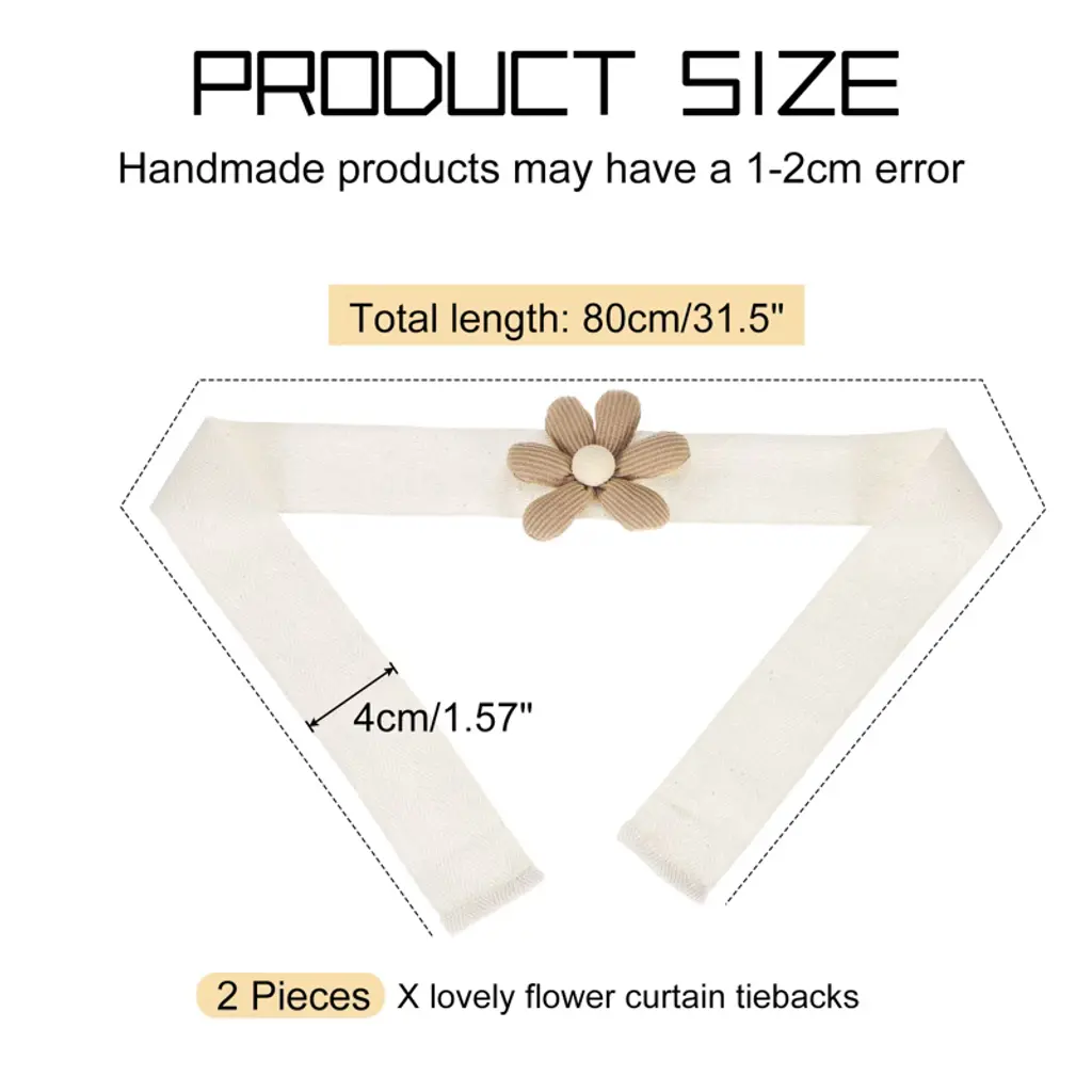 Enhance any space with these cute flower curtain tiebacks. Their compact size and elegant design allow for versatility in decoration. Made from durable cotton, these tiebacks are soft and beautifully handmade, ensuring they last longer without breaking. They are easy to use, requiring no hooks or installation, which prevents damage to walls or curtains. Ideal for various settings, including living rooms, bedrooms, and offices, these tiebacks create a warm and inviting atmosphere. Hand washable for easy upkeep, they are perfect for both everyday and special occasions.
