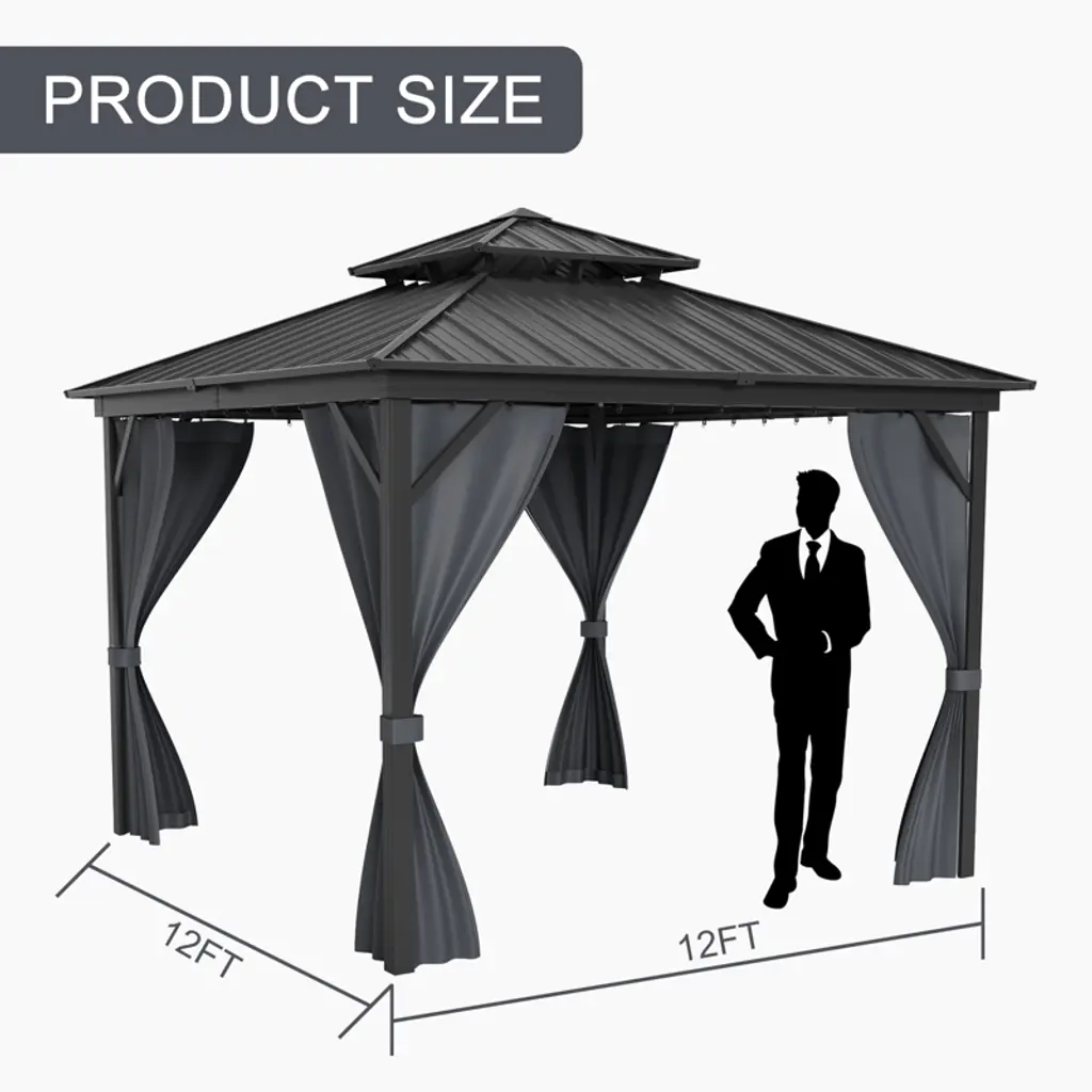 12x12ft Hardtop Gazebo, Aluminum Frame W/ Double Galvanized Steel Roof, Outdoor Metal Pavilion W/ Netting Curtains For Patio, Garden, Lawn, Backyard