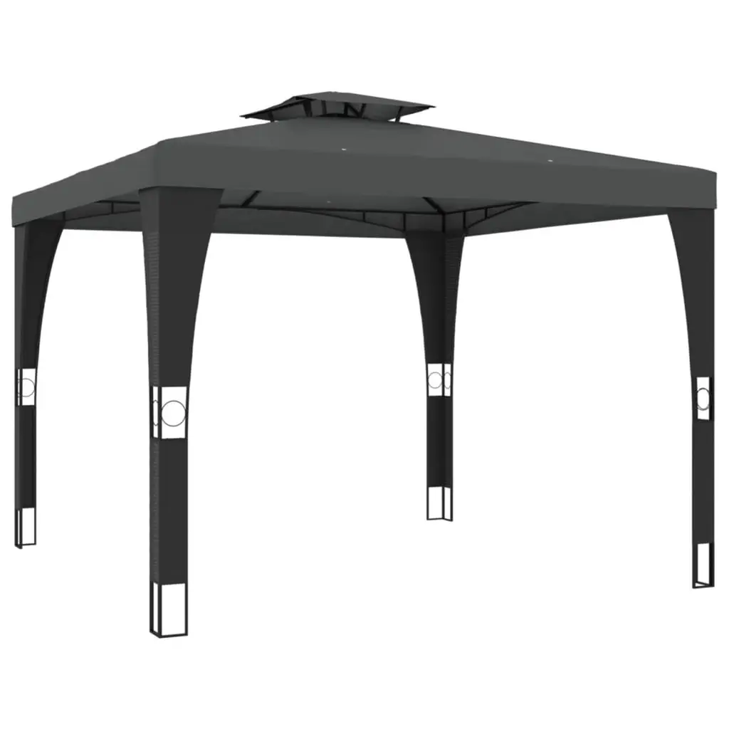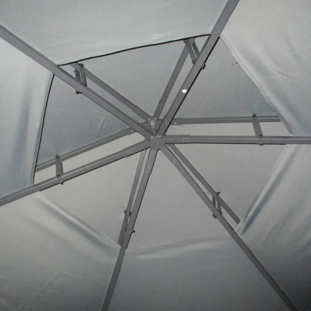 13' X 13' Patio Gazebo, Double Roof Hexagon Outdoor Gazebo Canopy Shelter With Netting & Curtains - Grey