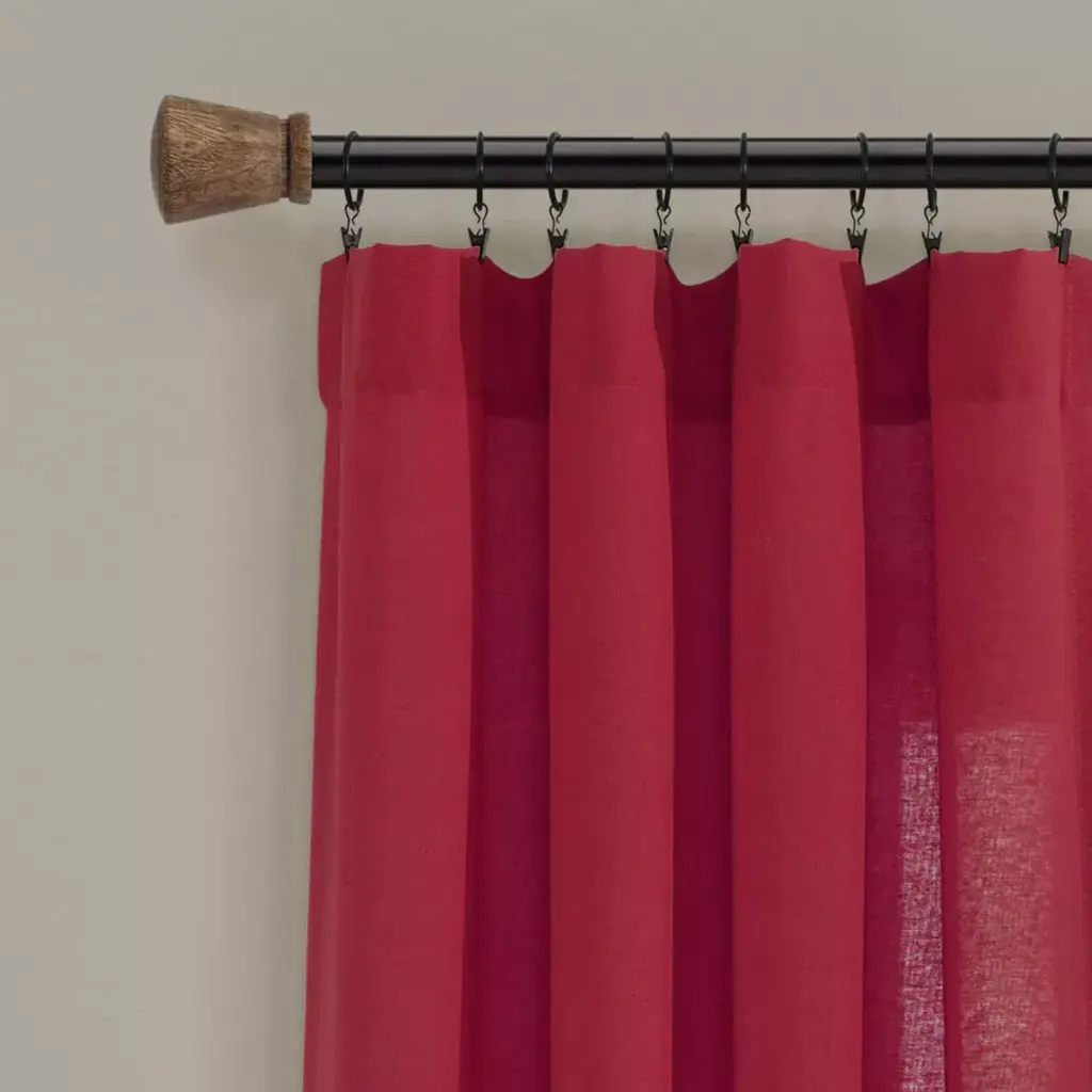 1Pc 40"x84" Light Filtering Farmhouse Linen Button Curtain Panel Red - Lush Décor