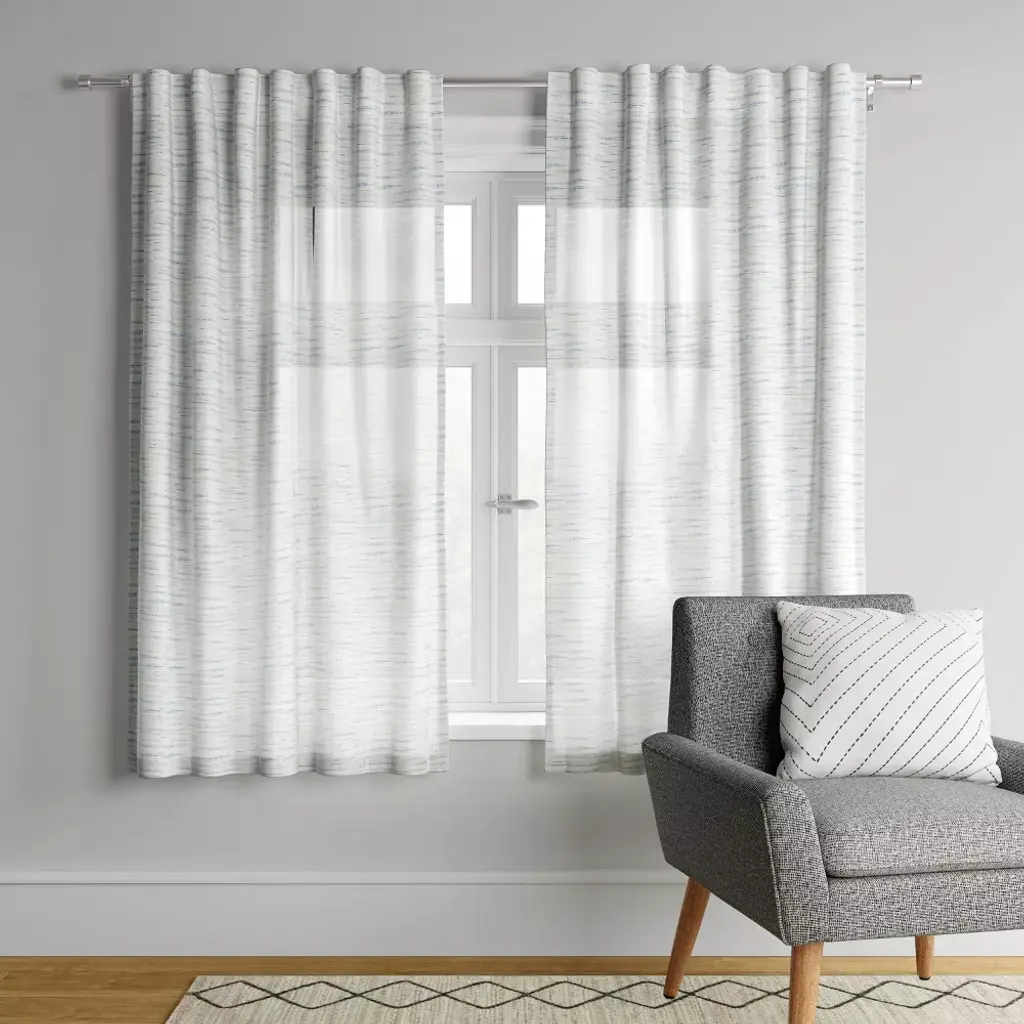 Spruce up any room of the house with a Striation Herringbone Light-Filtering Curtain Panel from Project 62™. This curtain panel comes in a light, neutral color that mixes well with a variety of decor styles, and subtle color striations add extra interest and a sense of texture. The rod pocket makes this curtain compatible with your choice of curtain rod for versatile styling, and it's machine washable for easy care. No matter where you place it, you'll love the clean look and updated style this piece adds to your space. 1962 was a big year. Modernist design hit its peak and moved into homes across the country. And in Minnesota, Target was born — with the revolutionary idea to celebrate design for all. Project 62 embodies this legacy with a collection of modern pieces made for everyday living.