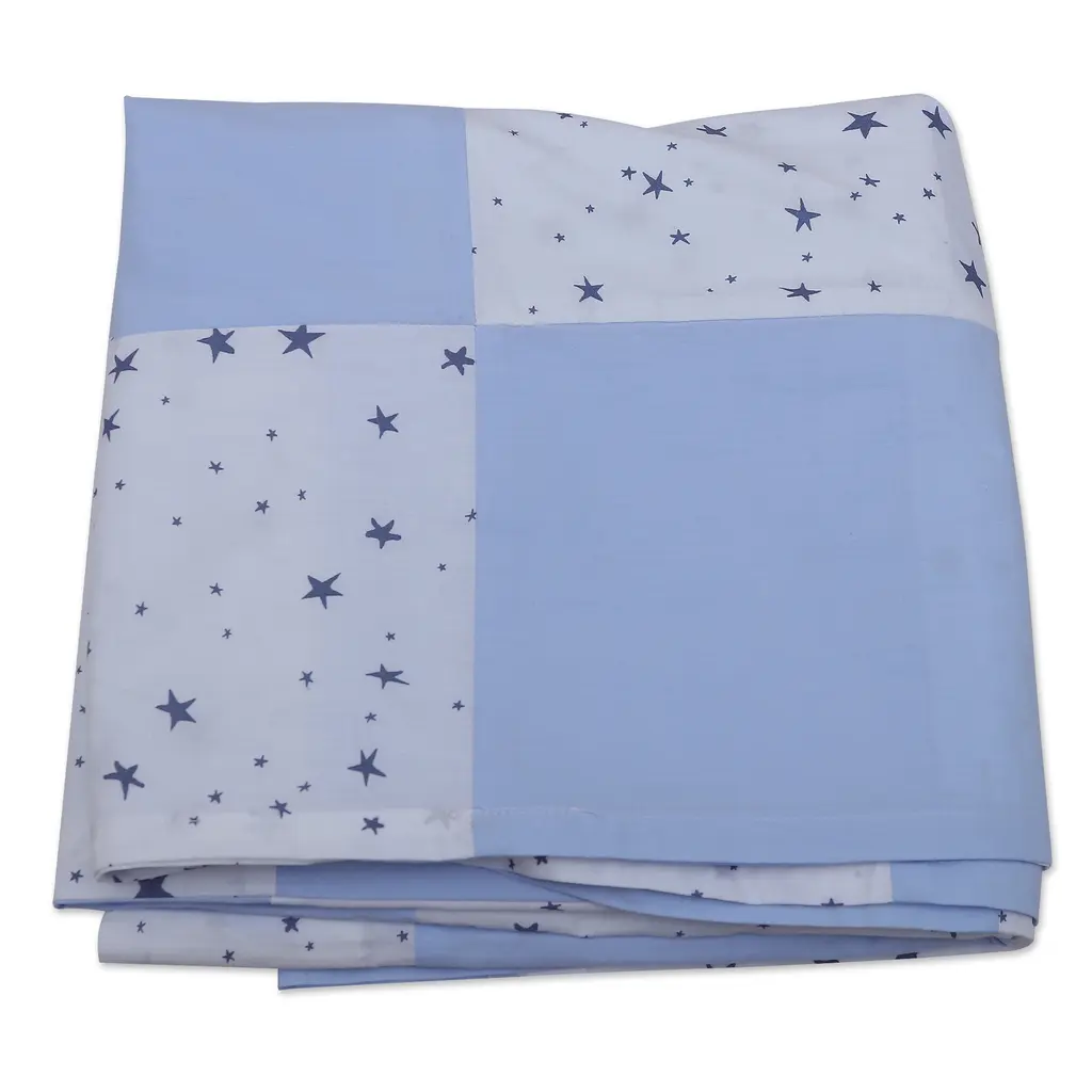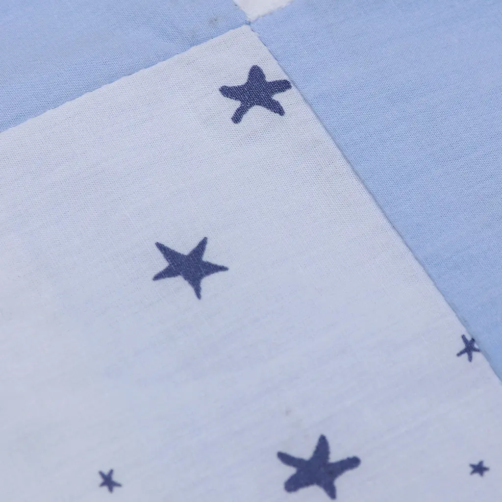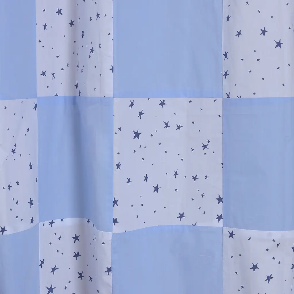 2 Checkered Blue And White Cotton Curtains With Star Patterns- Checkered Stars