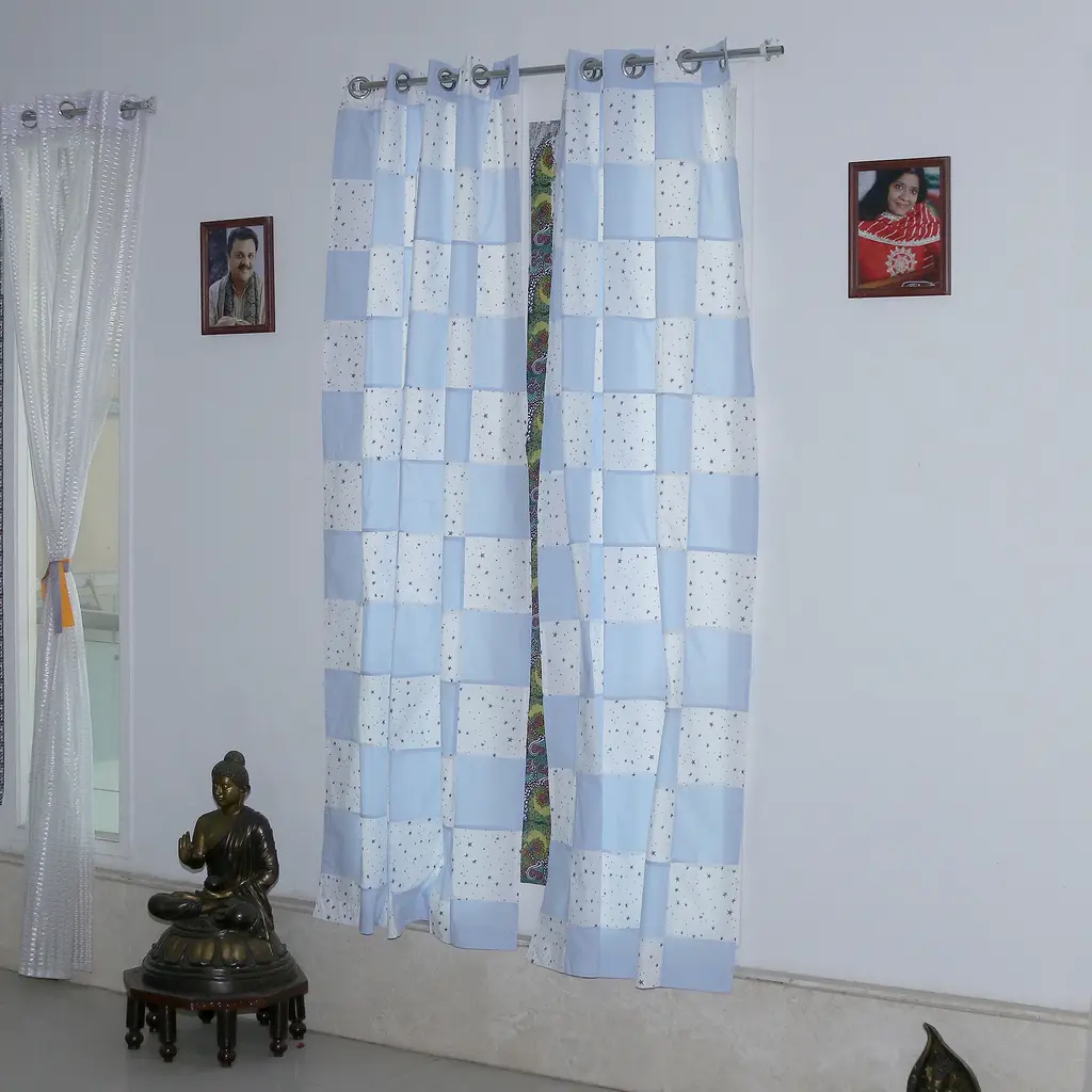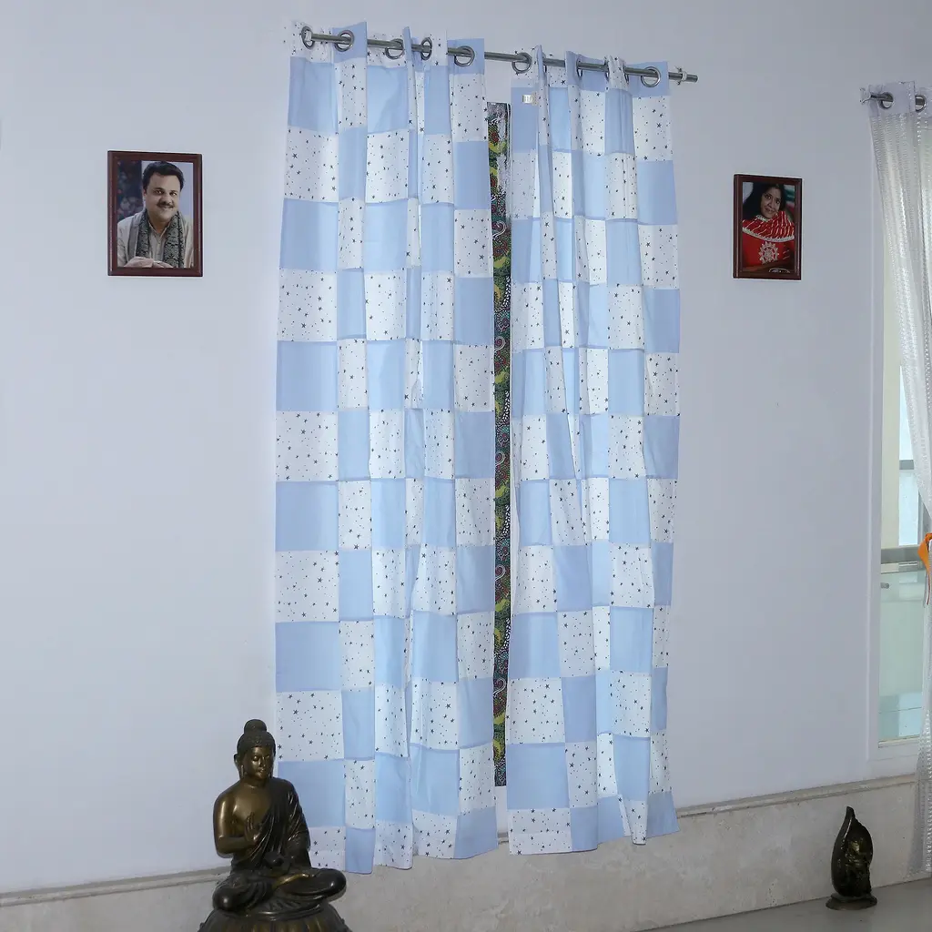 Infuse your space with a tranquil and elegant ambiance using this pair of cotton curtains adorned with screen-printed checkered and star patterns in soothing shades of blue and white. Presented by Sandeep Malhotra and skillfully crafted by talented Indian artisans, these delightful home accessories boast a graceful drape, making them an ideal addition for creating a sophisticated atmosphere.